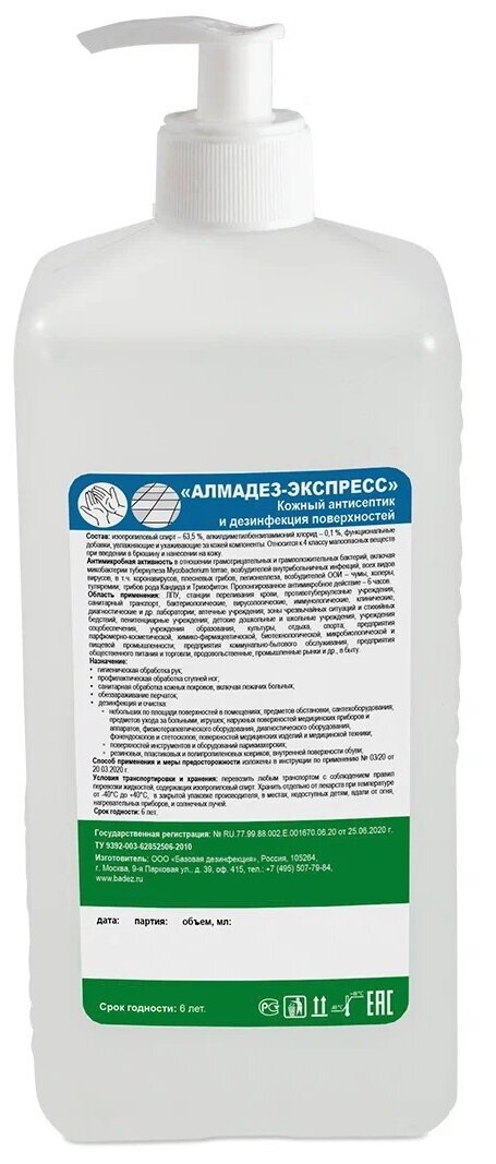 Состав: В качестве действующих веществ содержит: изопропиловый спирт (2-пропанол) — 63,5% и алкилдиметилбензиламмоний хлорид — 0,1%, а также функциональные добавки.
