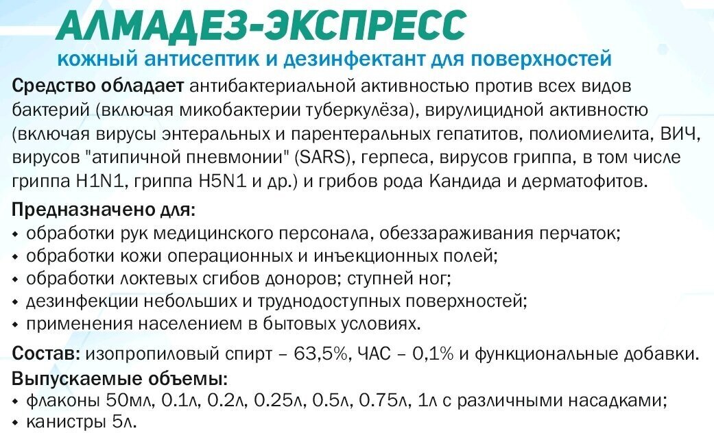 Средство «Алмадез-экспресс» предназначено для: