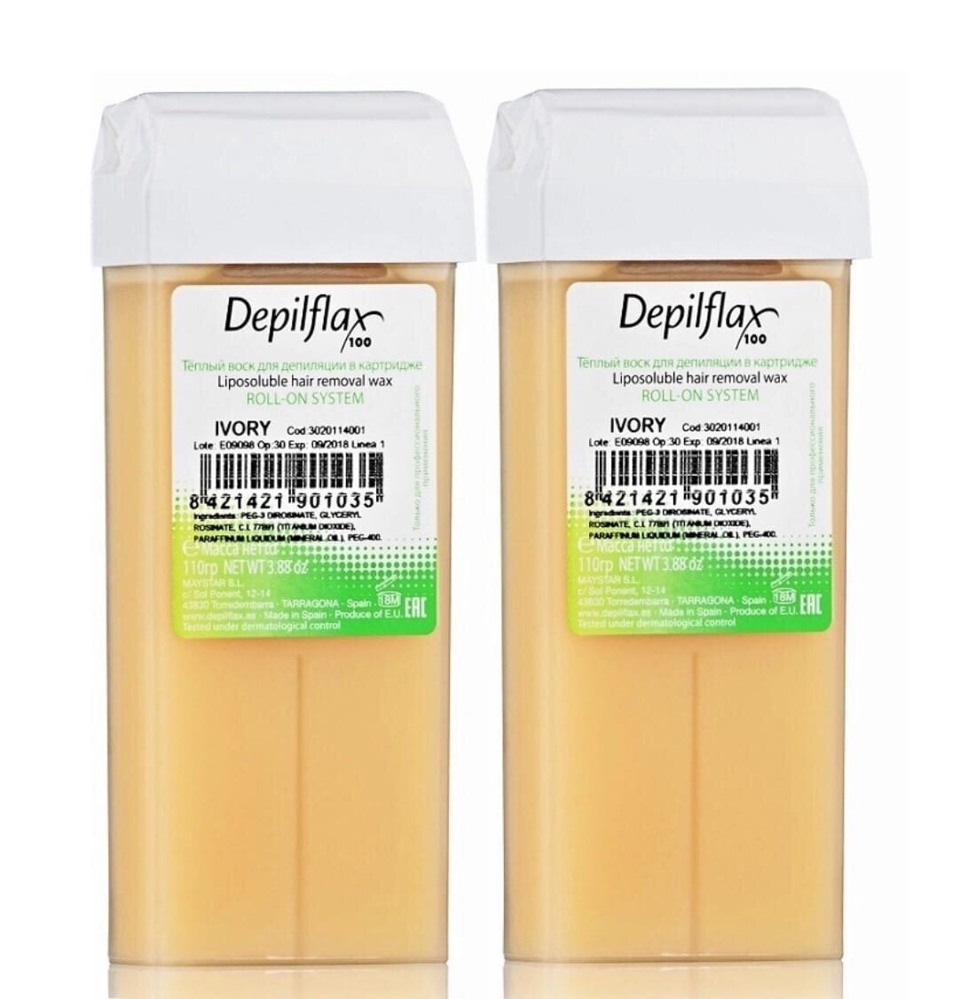 Набор для депиляции Depilflax100: воск слоновая кость, плотный, 110 гр (2 шт).