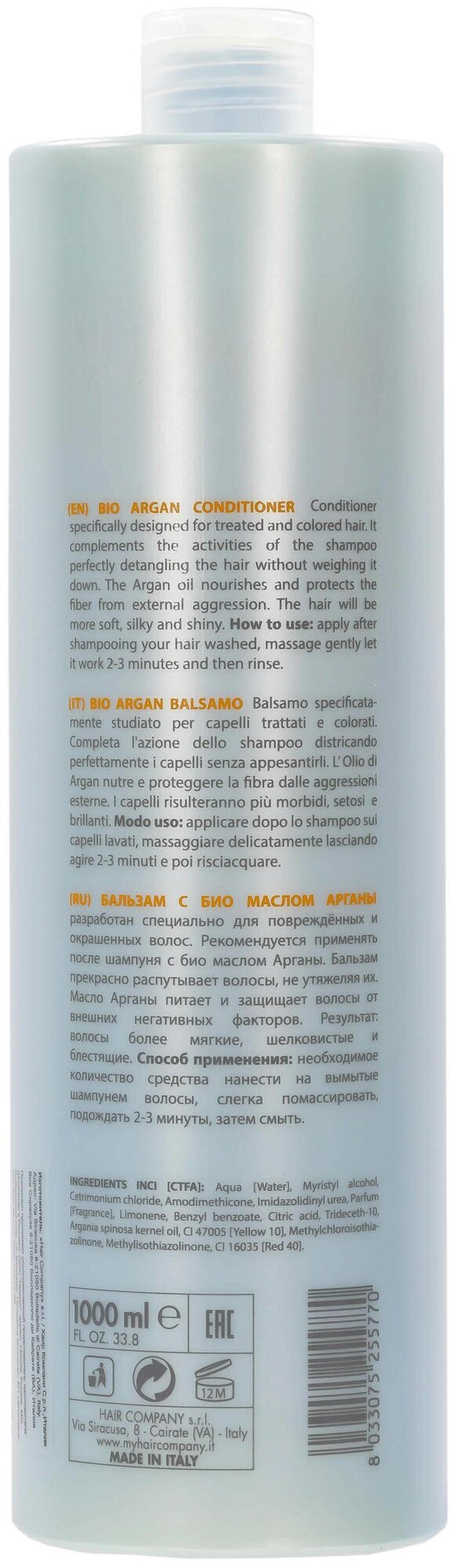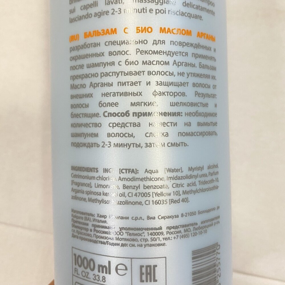 HAIR LIGHT BIO ARGAN Conditioner 1000ml производится в Италии, стране, известной своими качественными косметическими продуктами. Бальзам не содержит парабенов и сульфатов, что делает его безопасным для использования.
