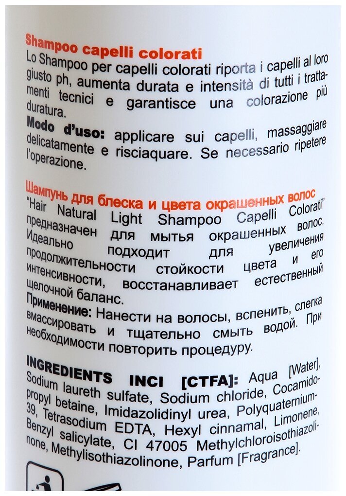 Шампунь Hair Company Hair Natural Light Shampoo Capelli Colorati не содержит парабенов, что делает его безопасным для ежедневного использования.