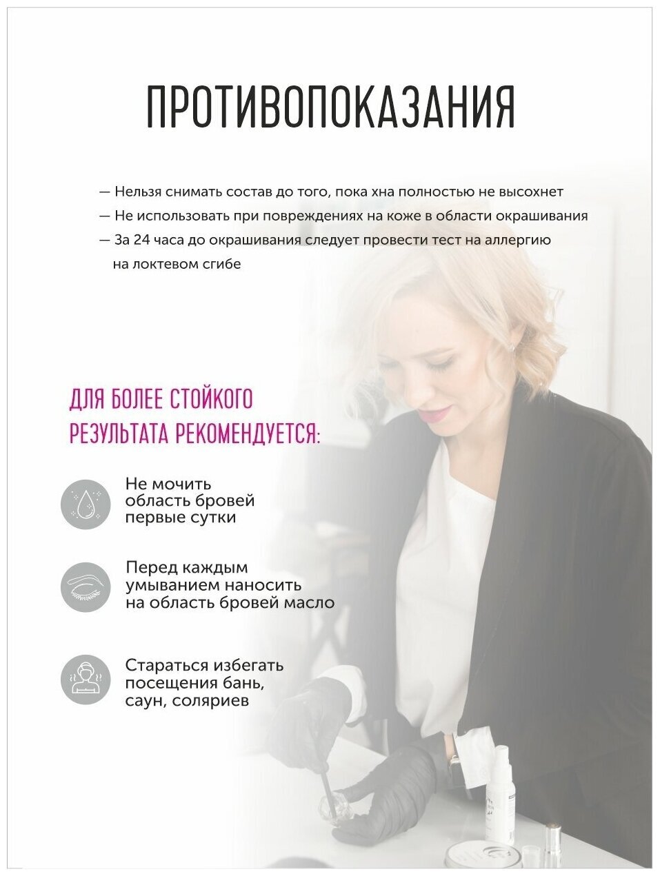 — добиться стойкого цвета и долговременного эффекта ухоженных бровей