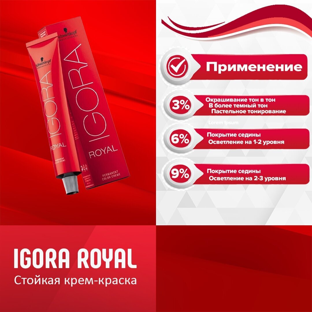 Особенностью краски является ее работа только с окислителем Igora Royal, который приобретается отдельно. Это обеспечивает максимальную эффективность окрашивания и защиту волос.