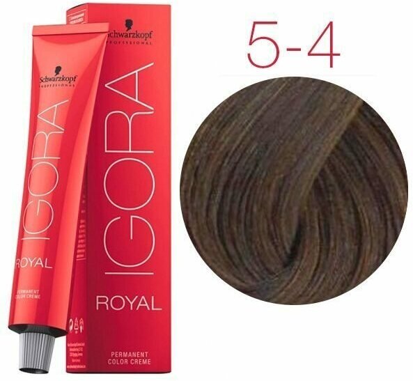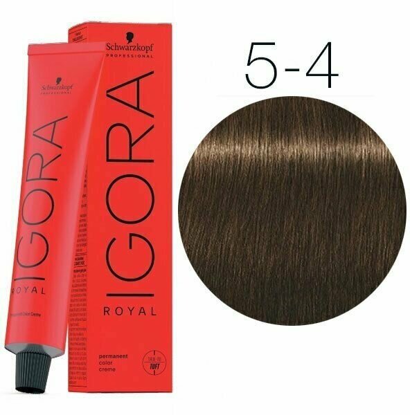 Игора Роял 5-4 Светлый коричневый бежевый 60 мл - стойкая краска для волос от известного немецкого бренда Schwarzkopf Professional. Она обеспечивает равномерное и стойкое окрашивание, а также ухаживает за волосами, делая их блестящими и здоровыми.