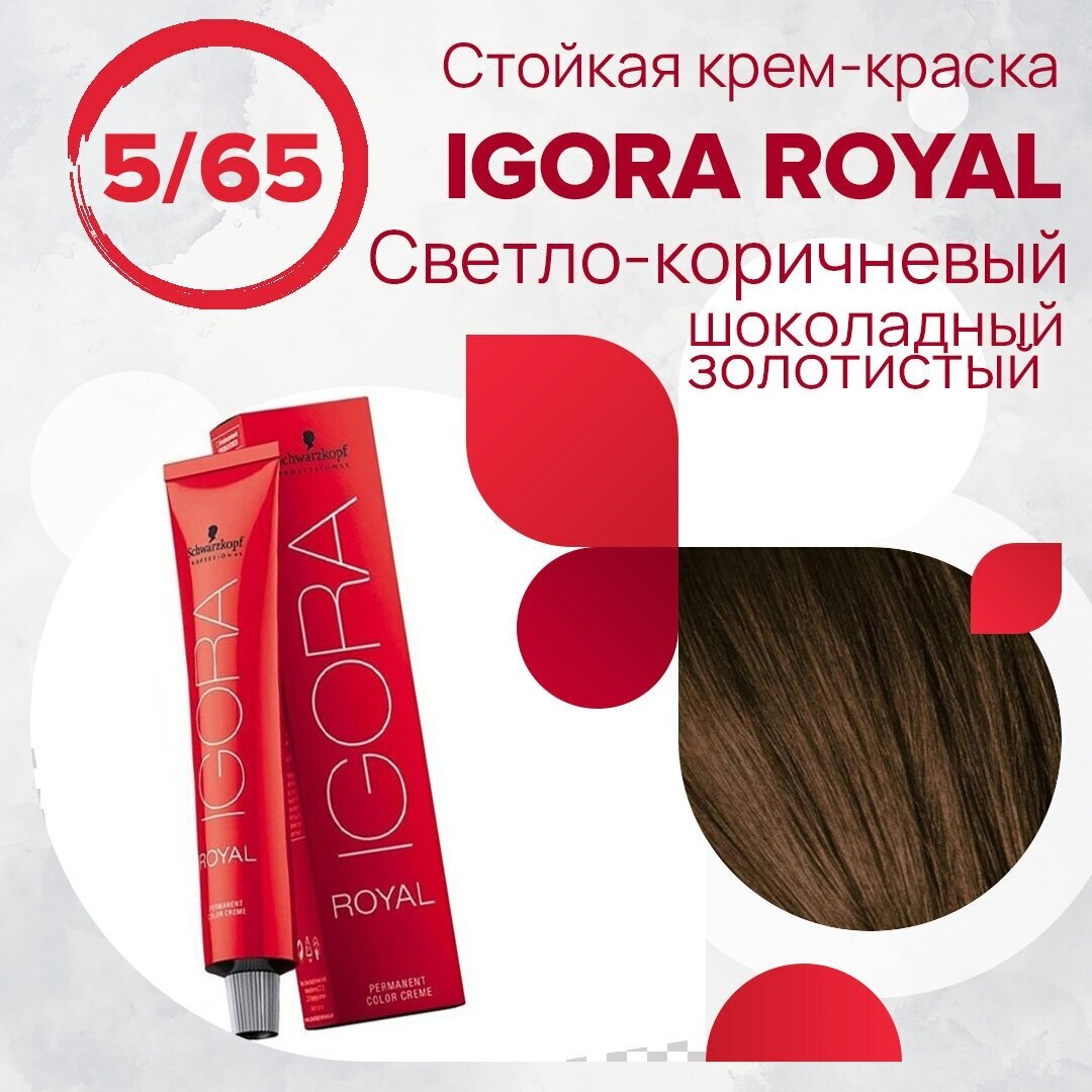 Игора Роял 5-65 Светлый коричневый шоколадный золотистый 60 мл - это отличный выбор для тех, кто хочет получить стойкий и насыщенный цвет волос, а также заботится о здоровье и красоте своих волос.