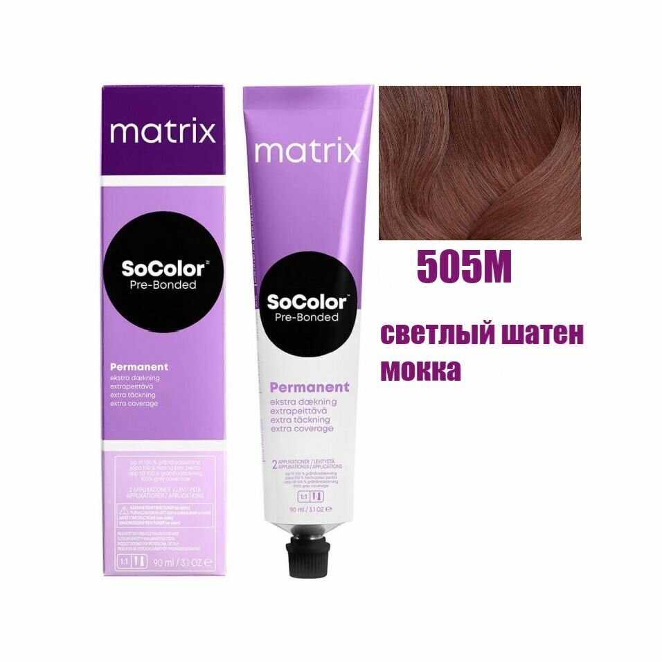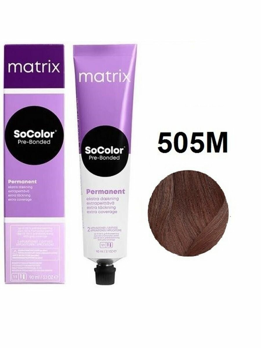 Matrix Краска для волос без аммиака SoColor Pre-Bonded 505M Светлый шатен мокка 90 мл.