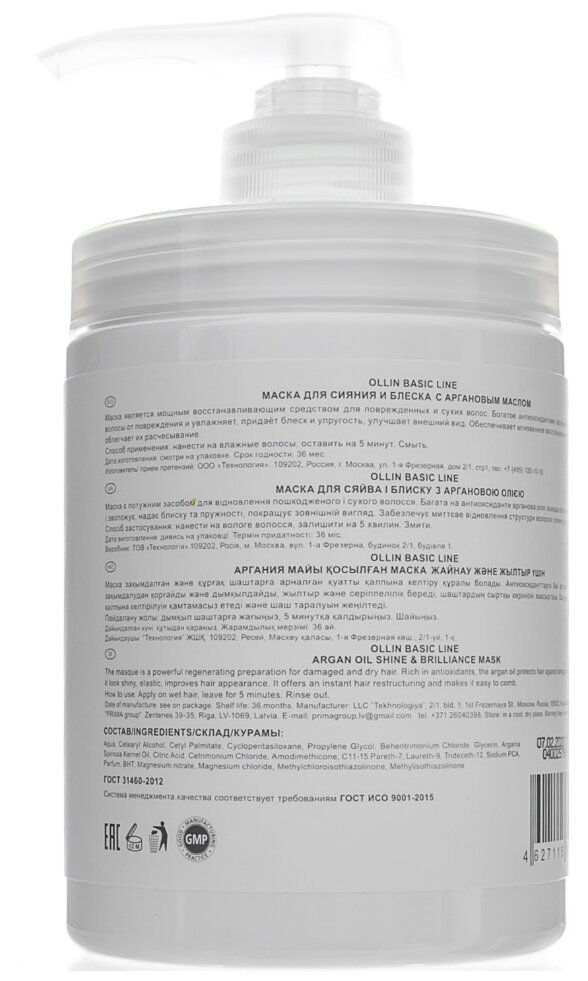 Маска OLLIN BASIC LINE с аргановым маслом имеет приятный аромат и удобную упаковку с дозатором, что делает ее использование гигиеничным и экономичным.