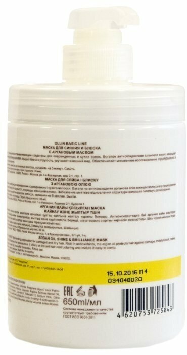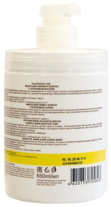 Выбирая маску для сияния и блеска OLLIN BASIC LINE с аргановым маслом, вы получаете профессиональный уход за волосами в домашних условиях.