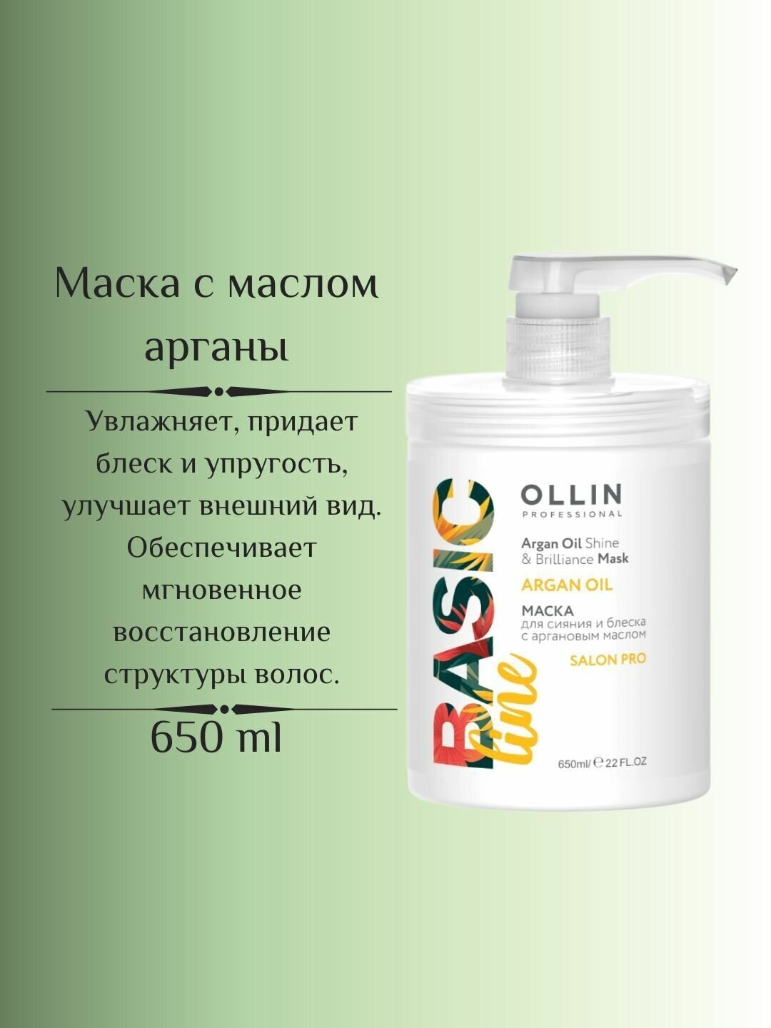 Маска для сияния и блеска OLLIN BASIC LINE с аргановым маслом – это профессиональное средство для ухода за волосами, которое обеспечивает глубокое восстановление и увлажнение. Объем маски составляет 650 мл, что делает ее экономичным и удобным в использовании.