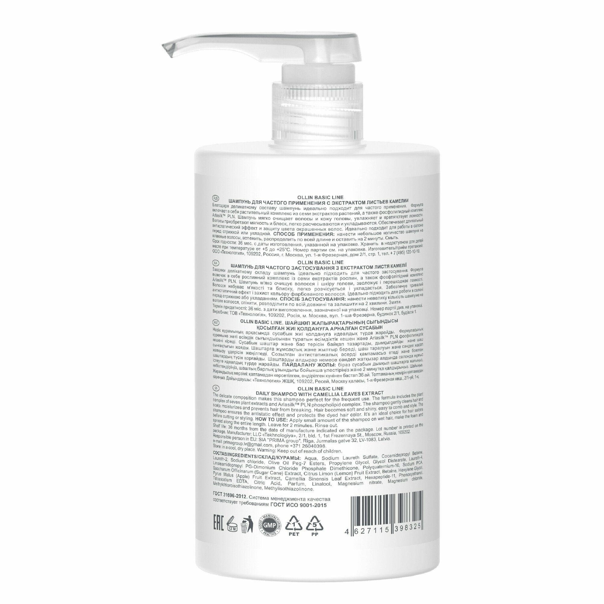 OLLIN BASIC LINE Шампунь для частого применения с экстрактом листьев камелии 750мл/ Daily Shampoo w – это профессиональное средство для ухода за волосами, разработанное российским брендом OLLIN Professional.