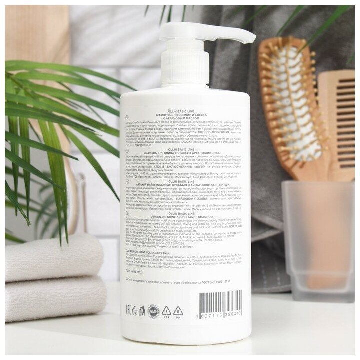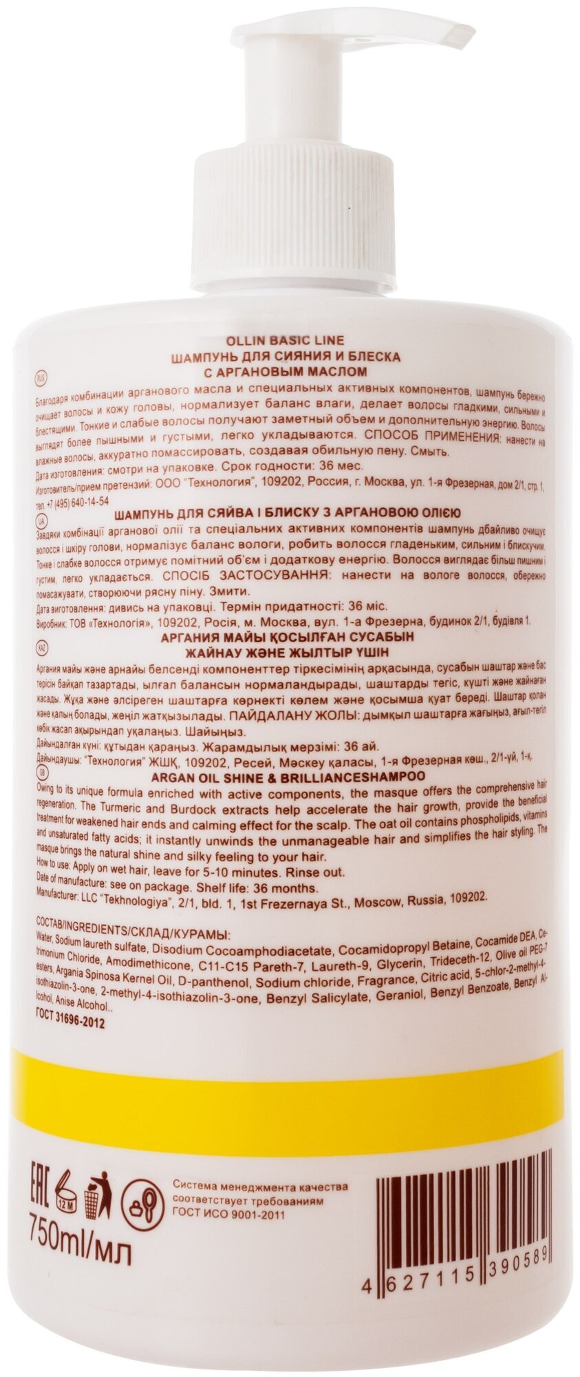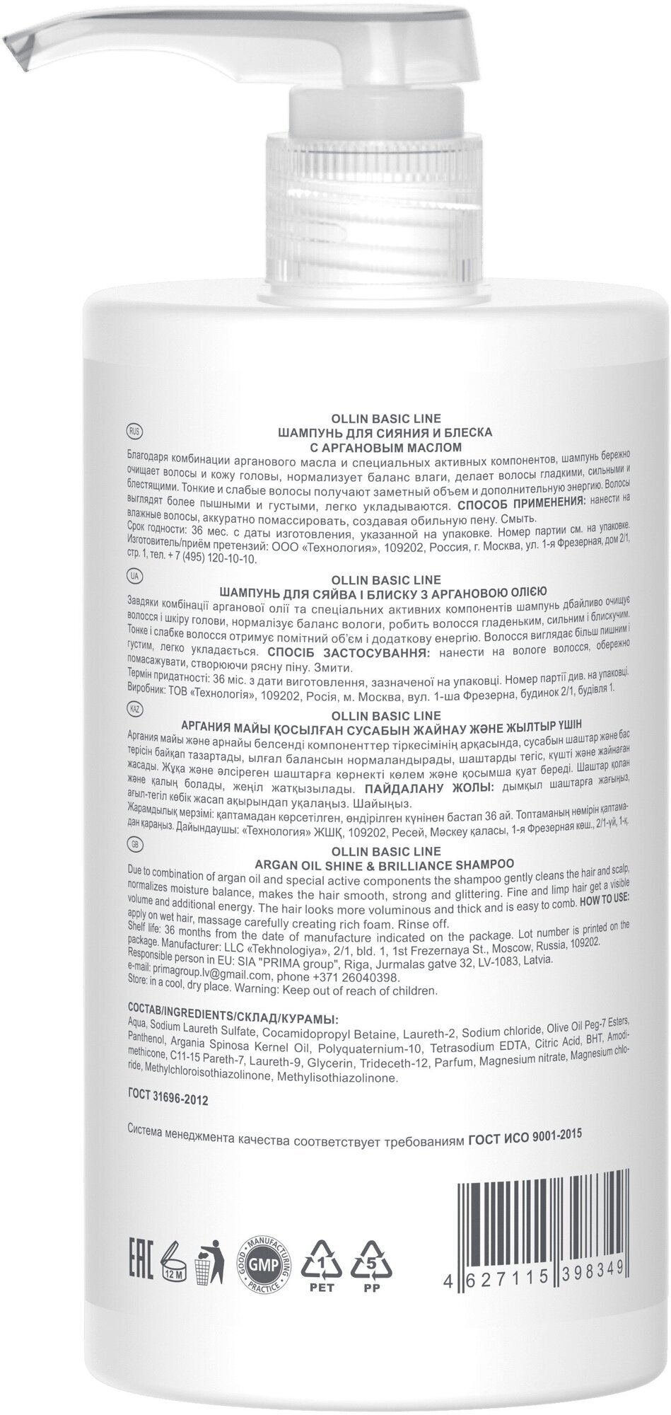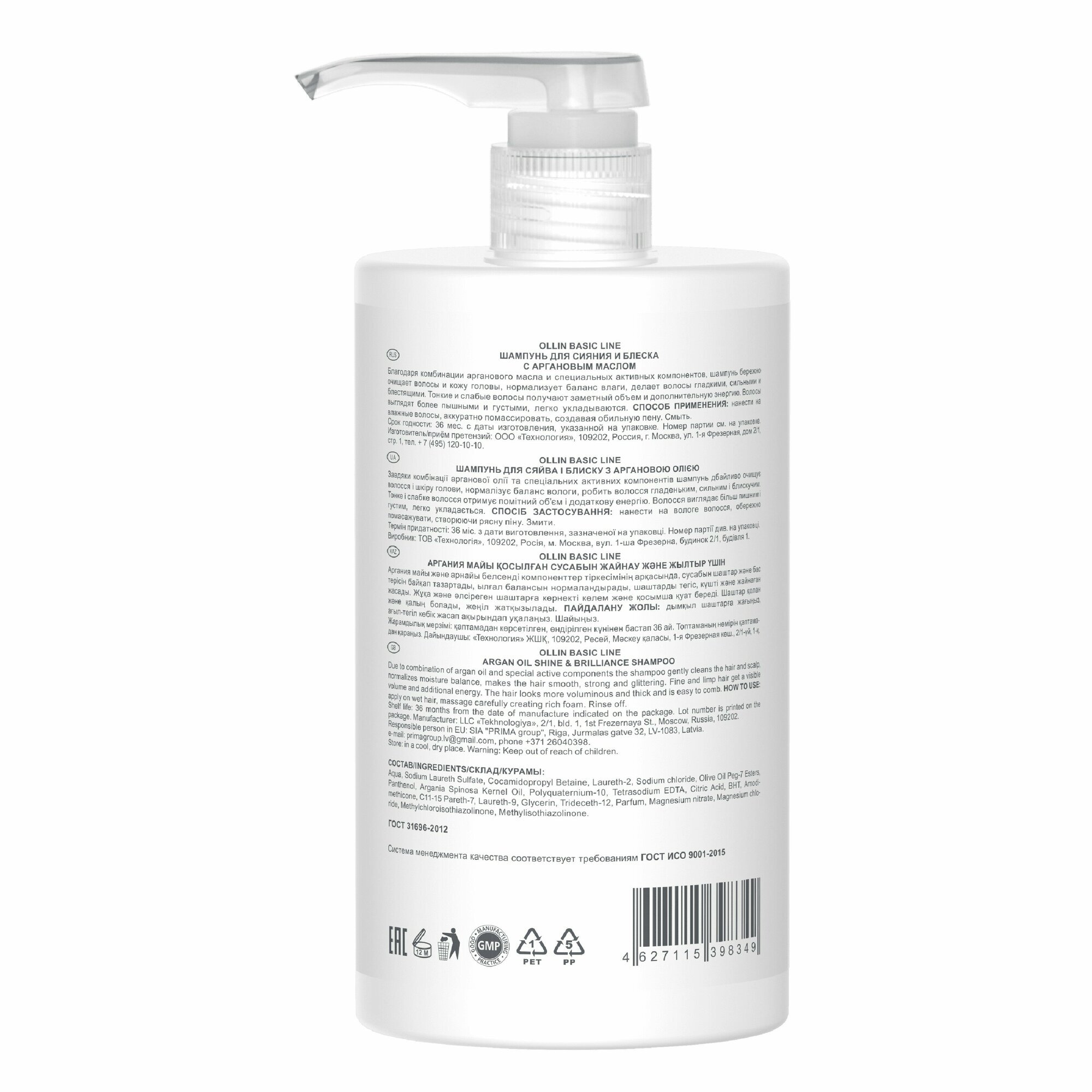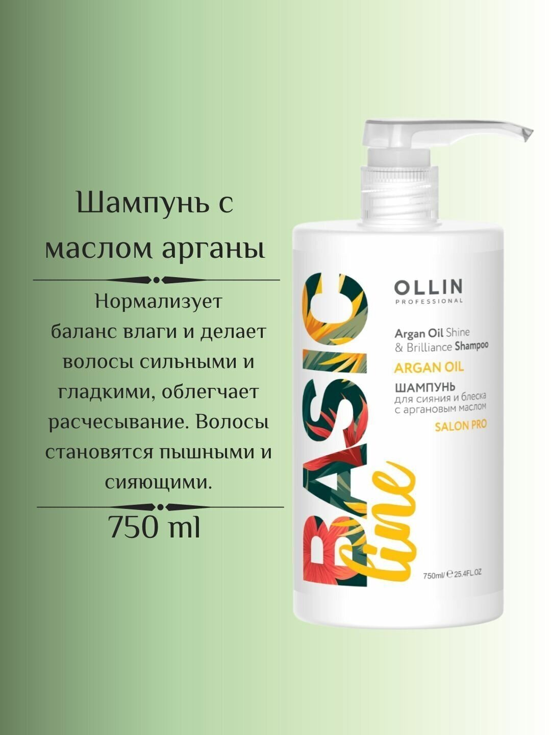 Шампунь для сияния и блеска с аргановым маслом OLLIN BASIC LINE 750 мл - это профессиональное средство для ухода за волосами, разработанное российским брендом OLLIN Professional. Этот бренд известен своими качественными и эффективными продуктами для волос, которые обеспечивают комплексный уход и восстановление.