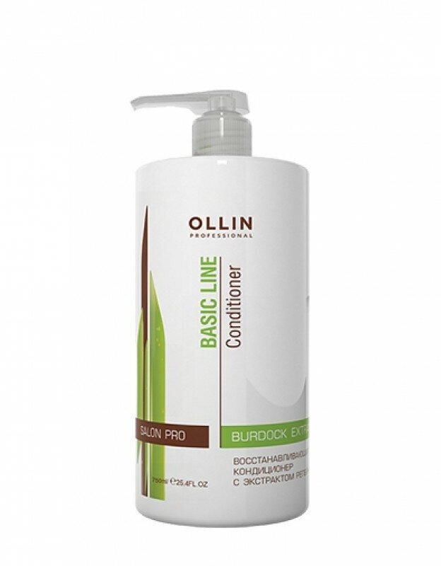 Восстанавливающий кондиционер OLLIN BASIC LINE с экстрактом репейника – это профессиональное средство для ухода за волосами, которое обеспечивает восстановление, питание и стимуляцию роста волос. Объем составляет 750 мл, что делает его экономичным вариантом для регулярного использования.