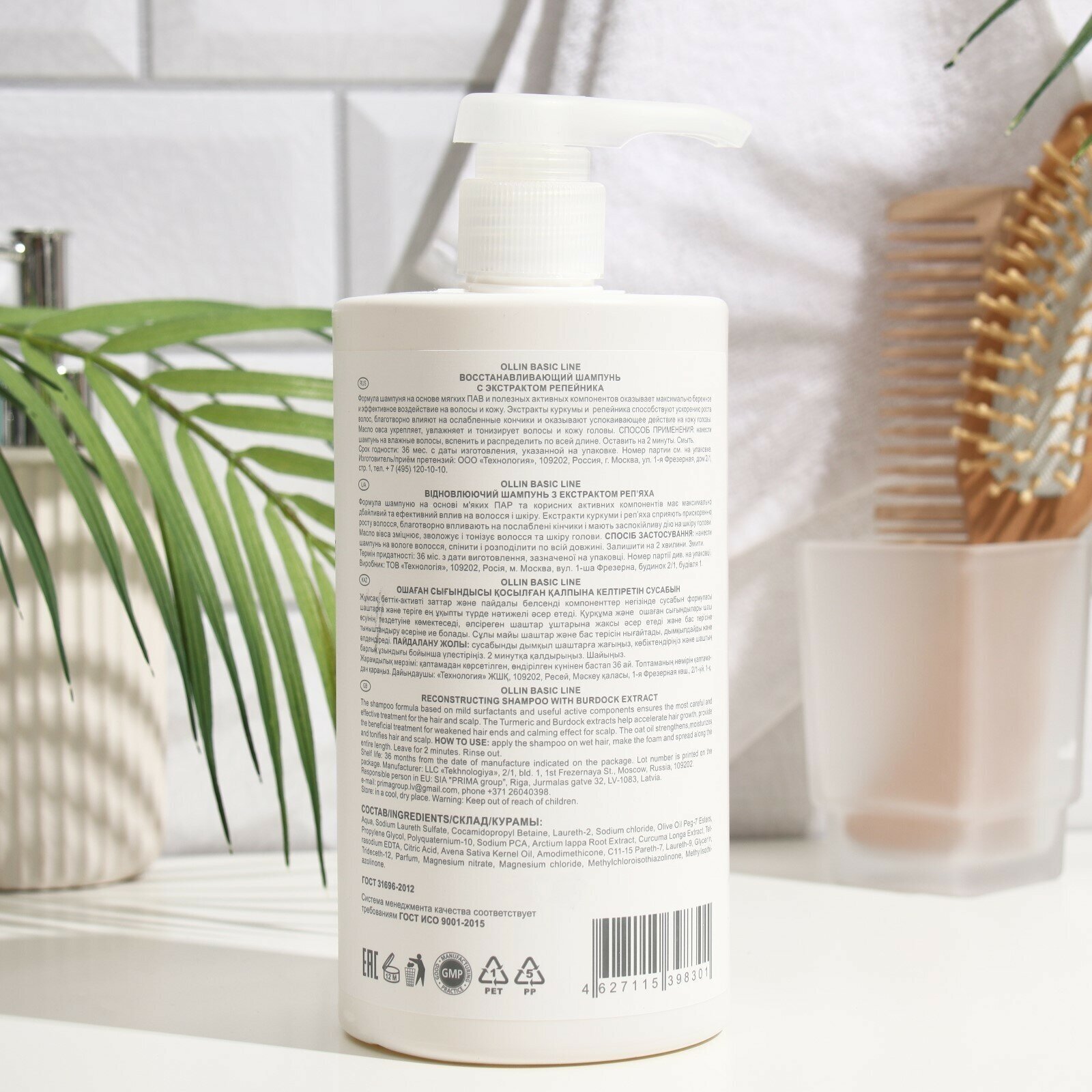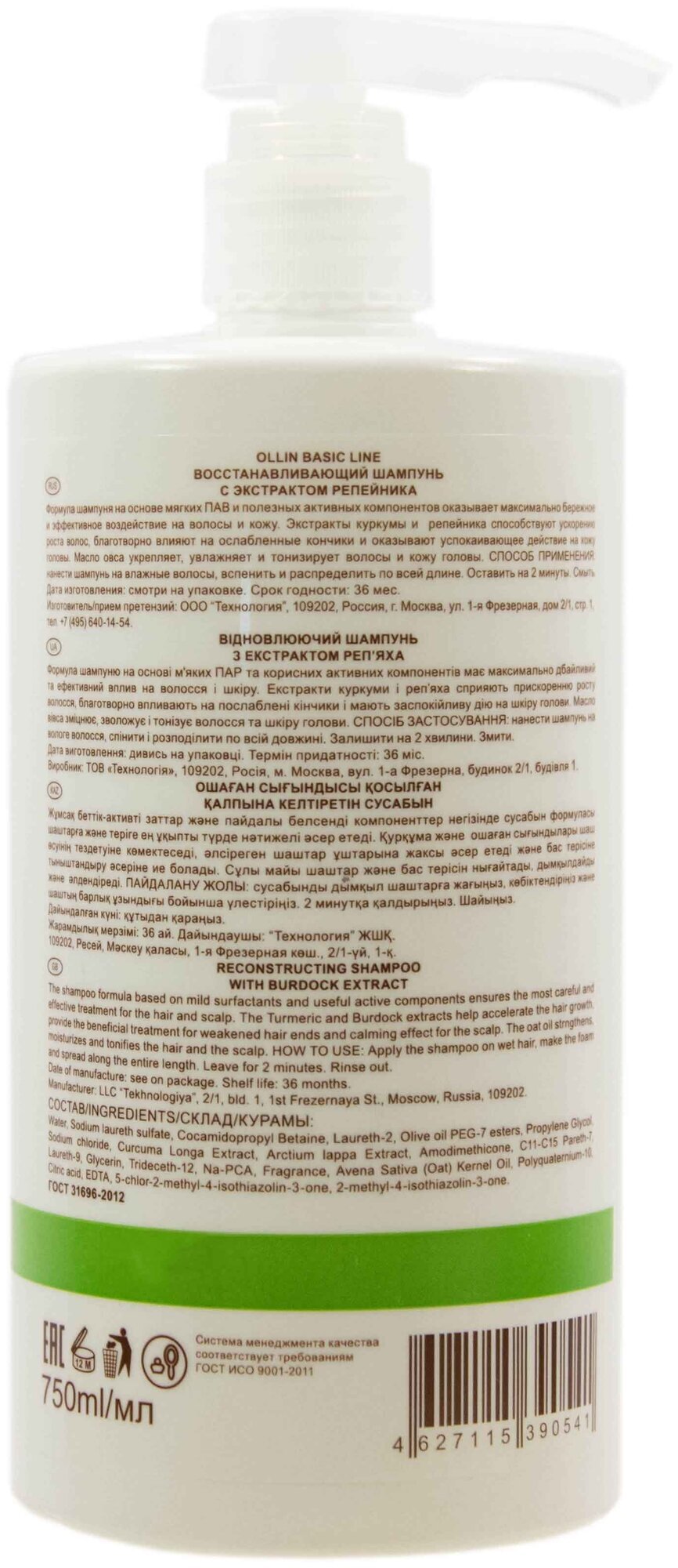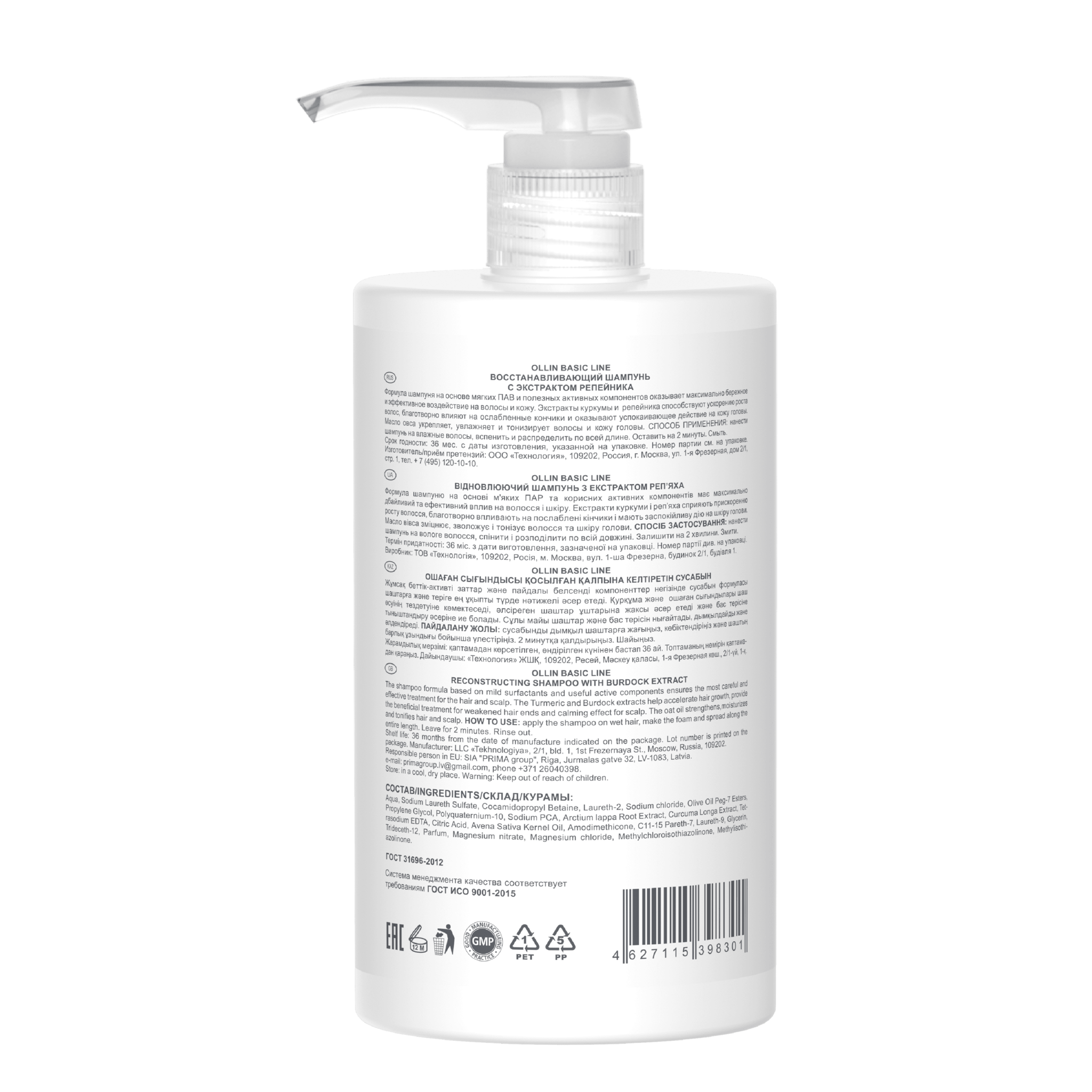 Восстанавливающий шампунь OLLIN BASIC LINE с экстрактом репейника объемом 750 мл предназначен для интенсивного ухода за поврежденными и сухими волосами. Продукт разработан российским брендом OLLIN Professional, который специализируется на профессиональных средствах для волос и предлагает полный спектр услуг по уходу за волосами.