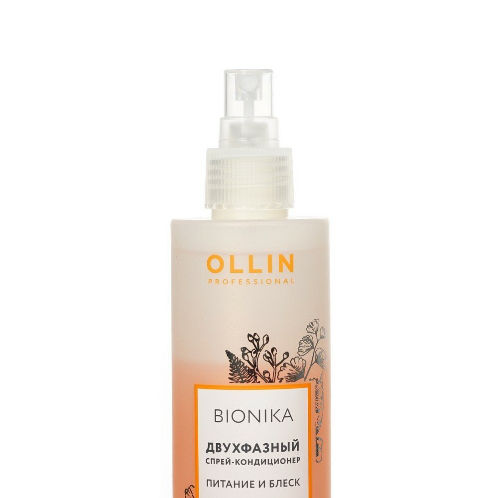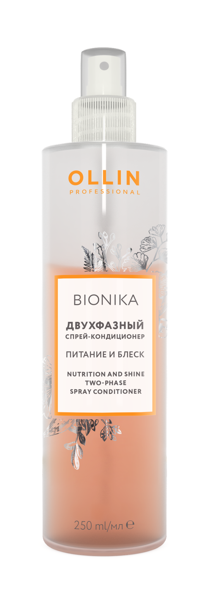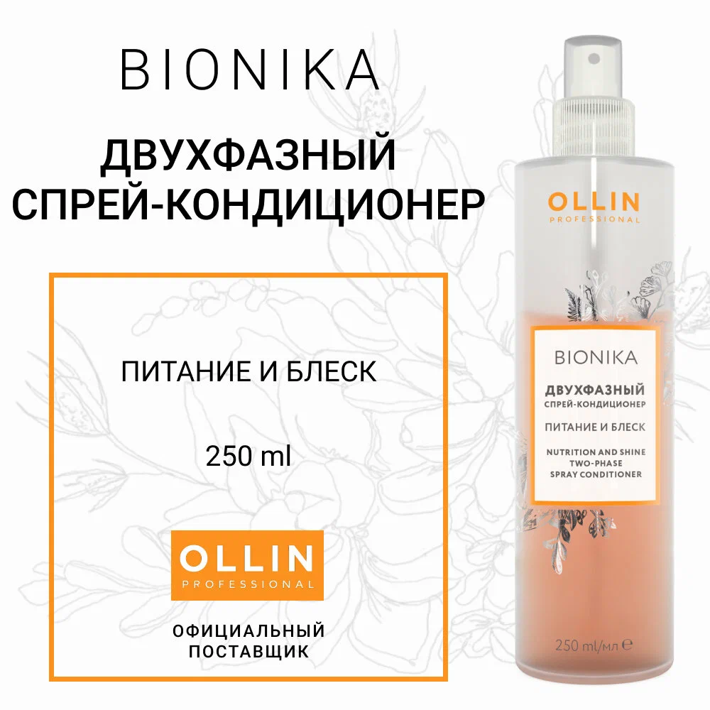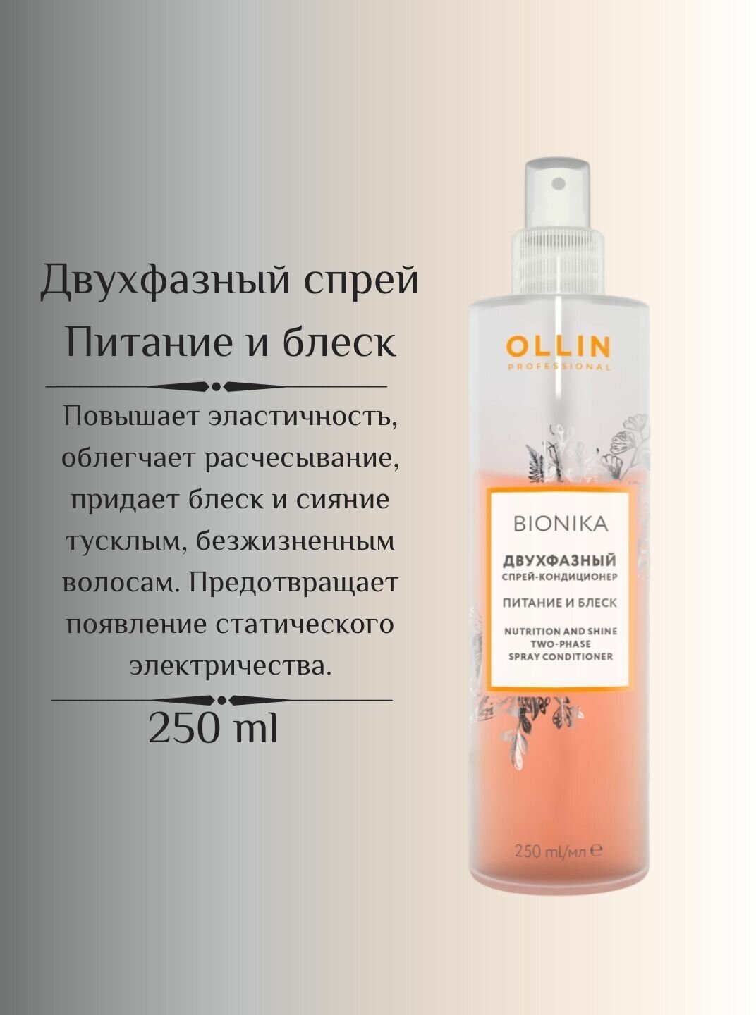 OLLIN BIONIKA Двухфазный спрей-кондиционер "Питание и блеск" 250мл - это профессиональное средство для ухода за волосами, разработанное известным российским брендом OLLIN Professional.