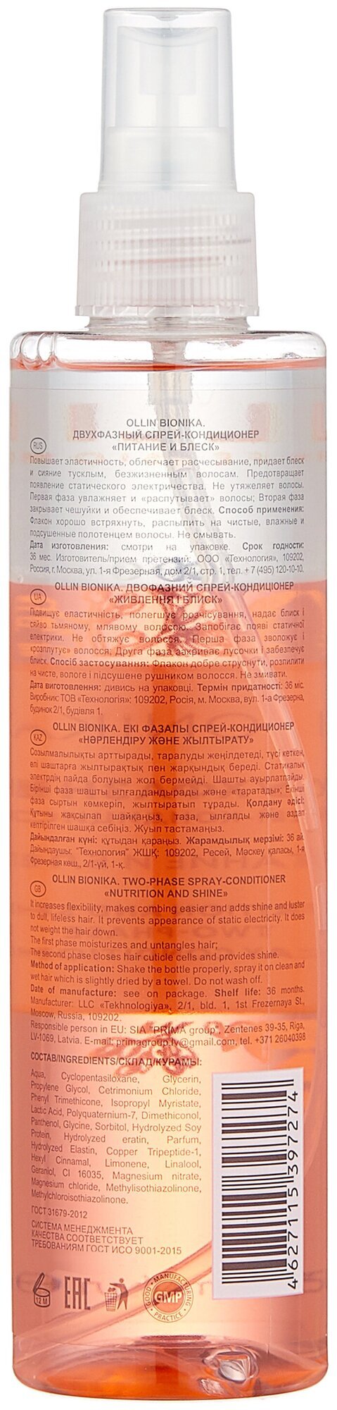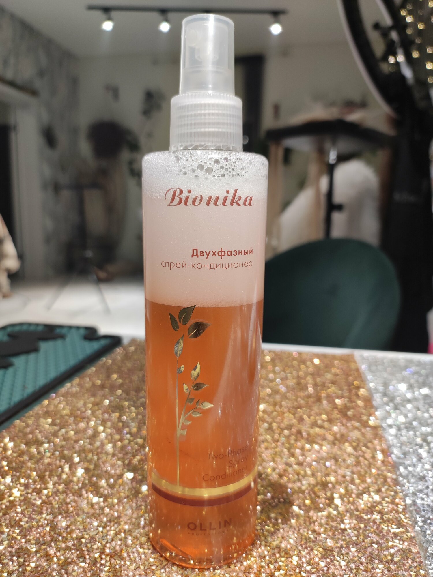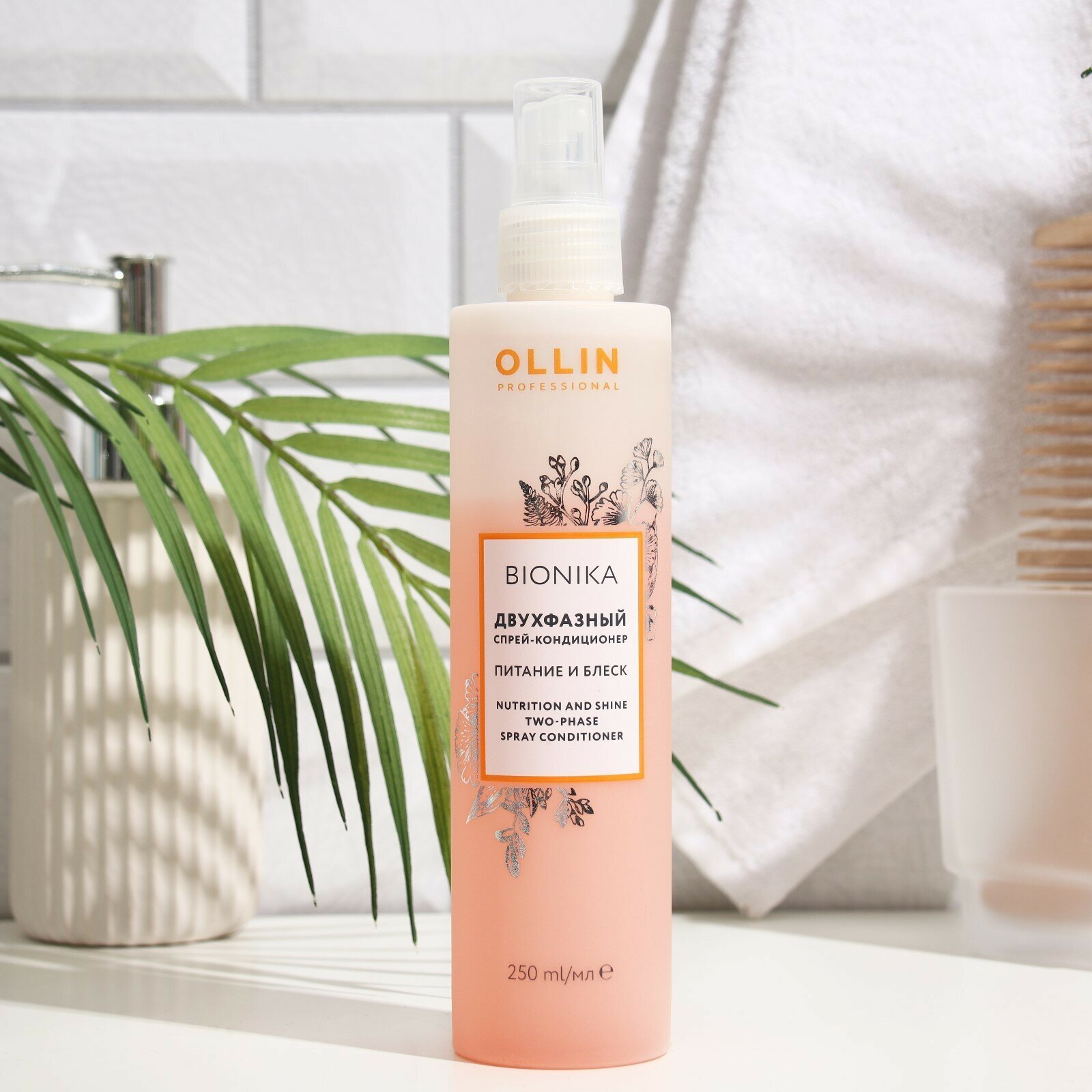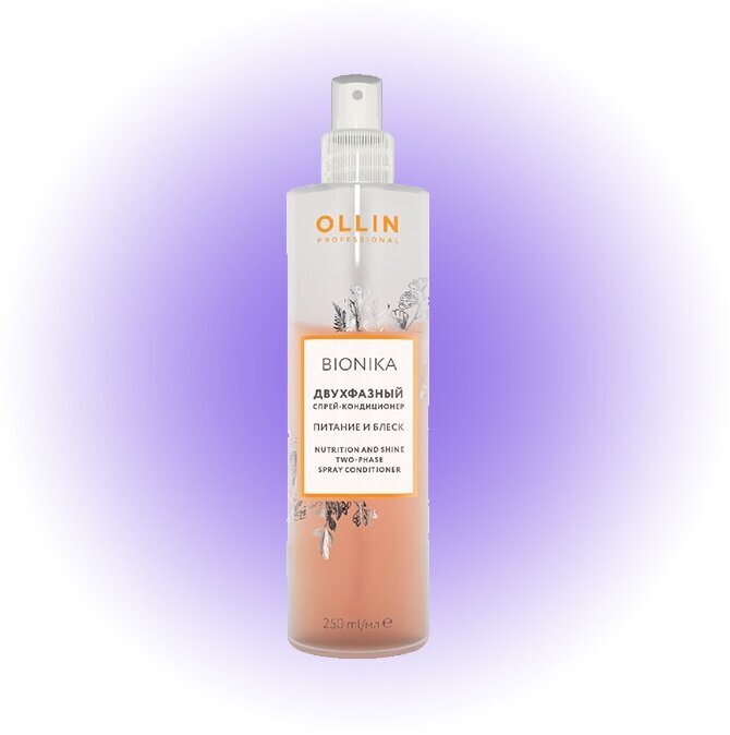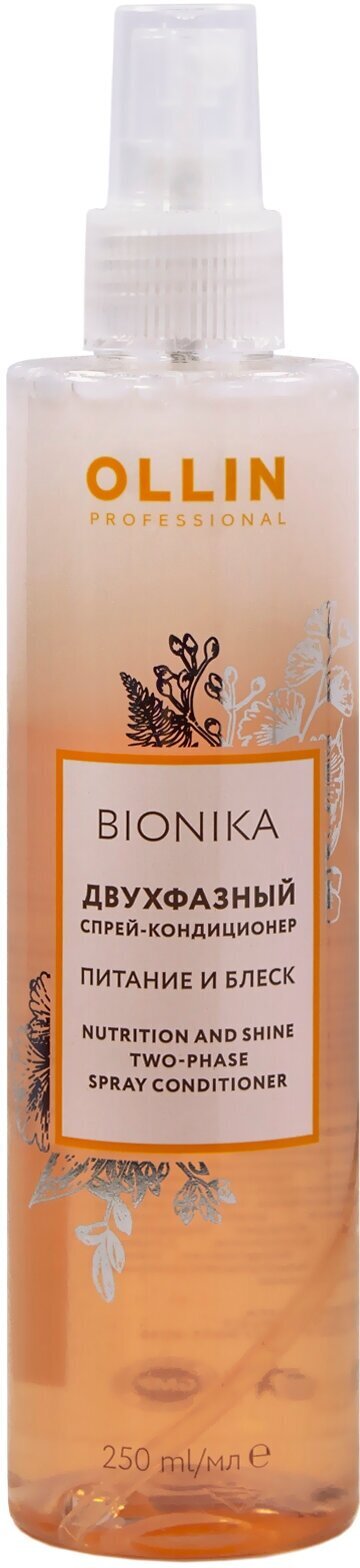 OLLIN BIONIKA Двухфазный спрей-кондиционер "Питание и блеск" 250мл - это профессиональное средство для ухода за волосами, разработанное известным российским брендом OLLIN Professional.