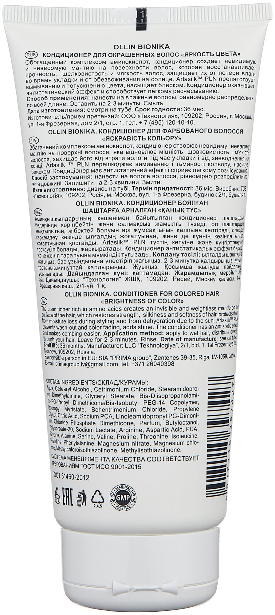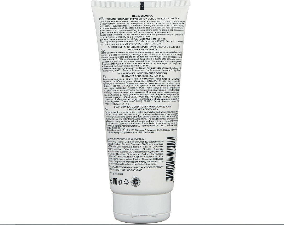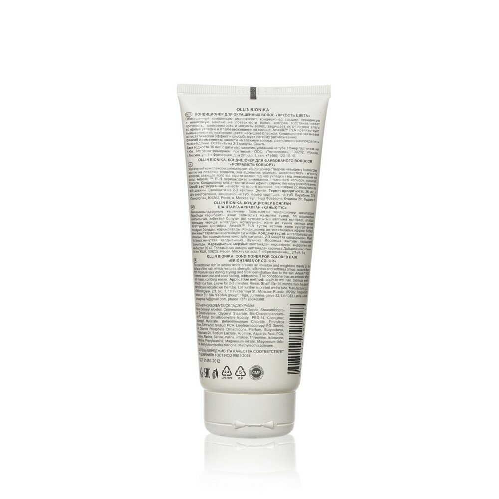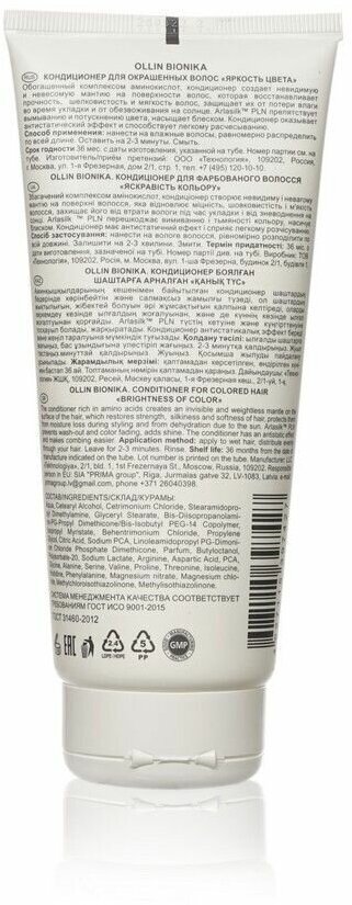 Кондиционер Bionika "Яркость цвета" от бренда OLLIN Professional - это профессиональный продукт для ухода за окрашенными волосами. Он разработан специально для сохранения яркости и насыщенности цвета, а также обеспечивает эффективный уход и защиту волос.