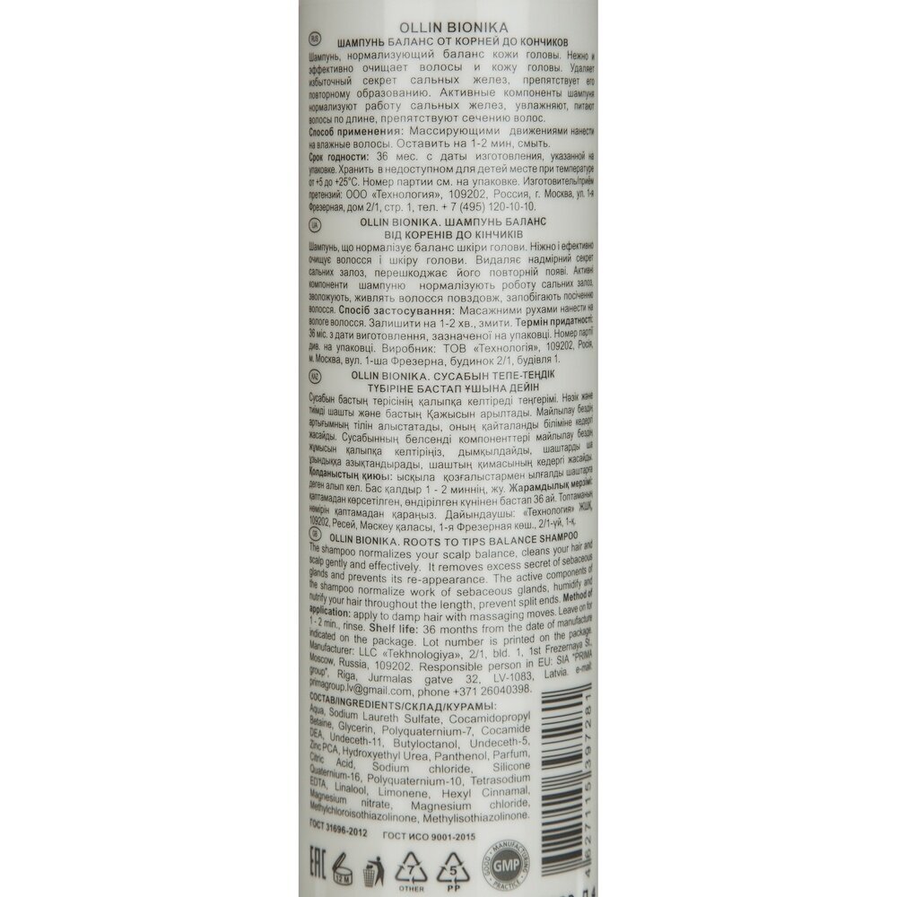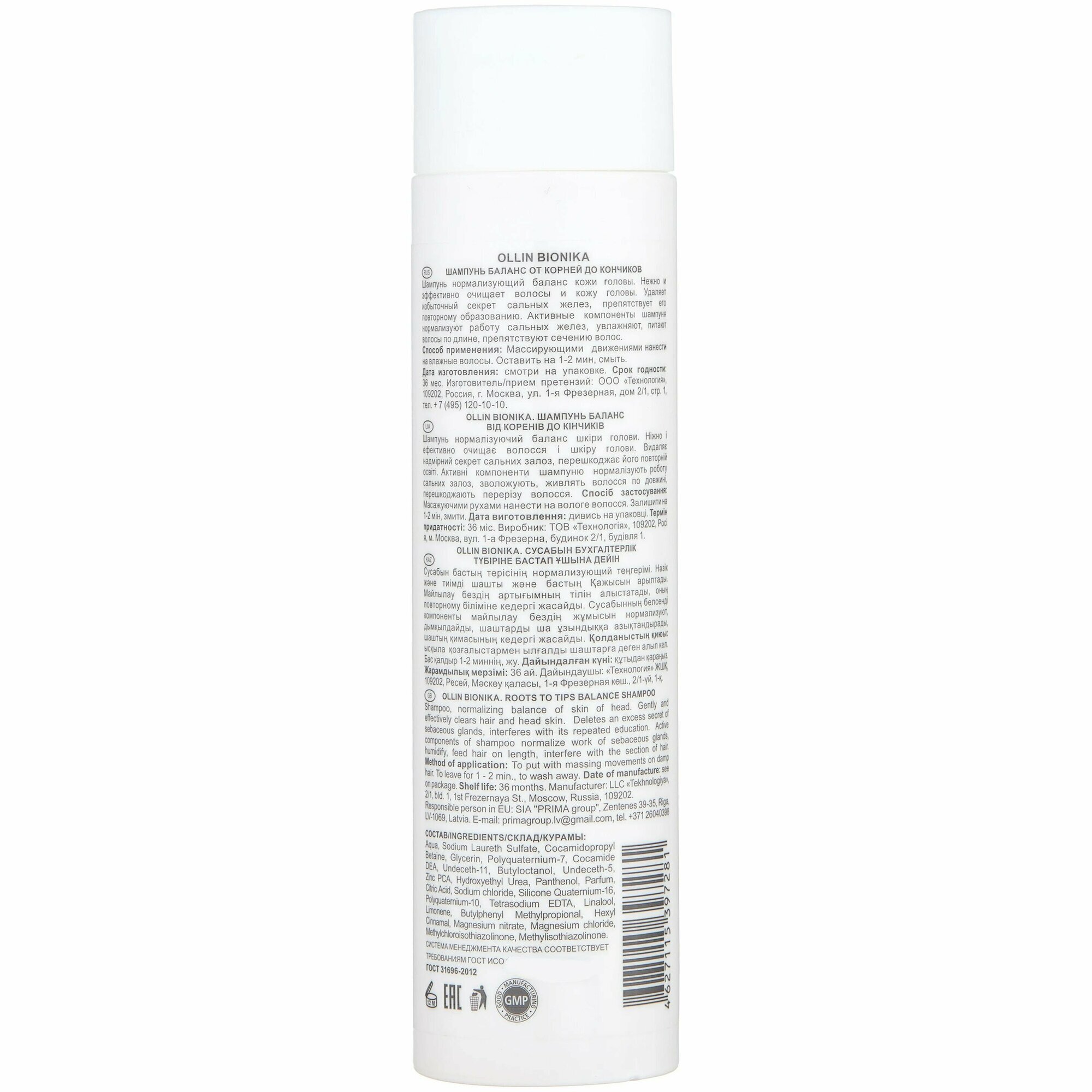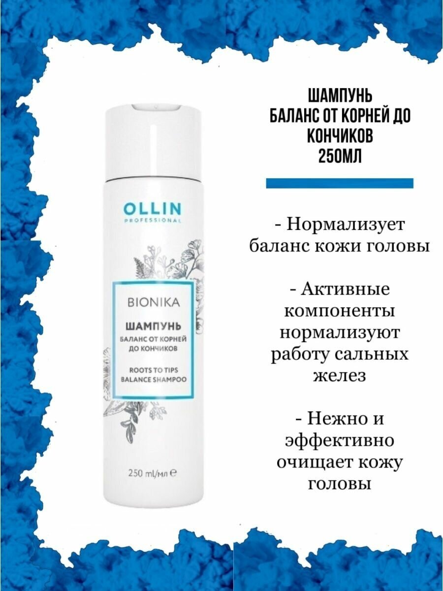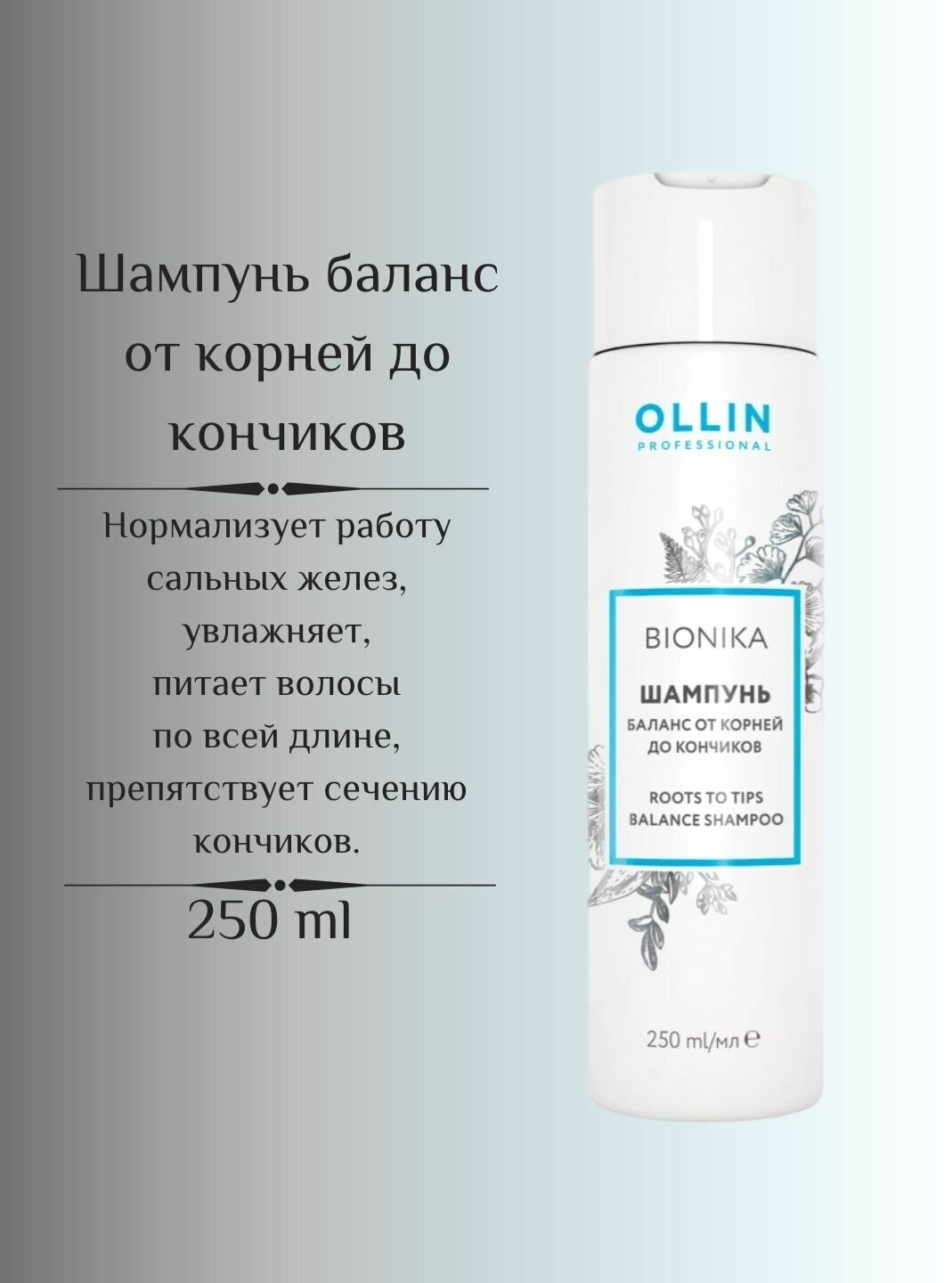 Шампунь OLLIN BIONIKA Баланс от корней до кончиков 250мл - это профессиональное средство для ежедневного ухода за волосами. Произведенный в Италии, этот шампунь обеспечивает глубокое очищение, питание и увлажнение волос, а также себорегуляцию и устранение секущихся кончиков.