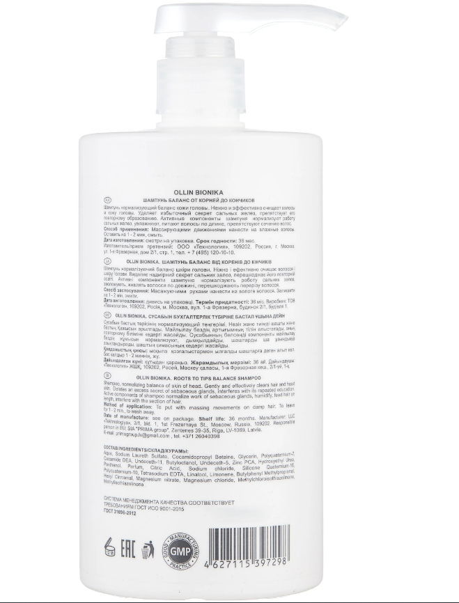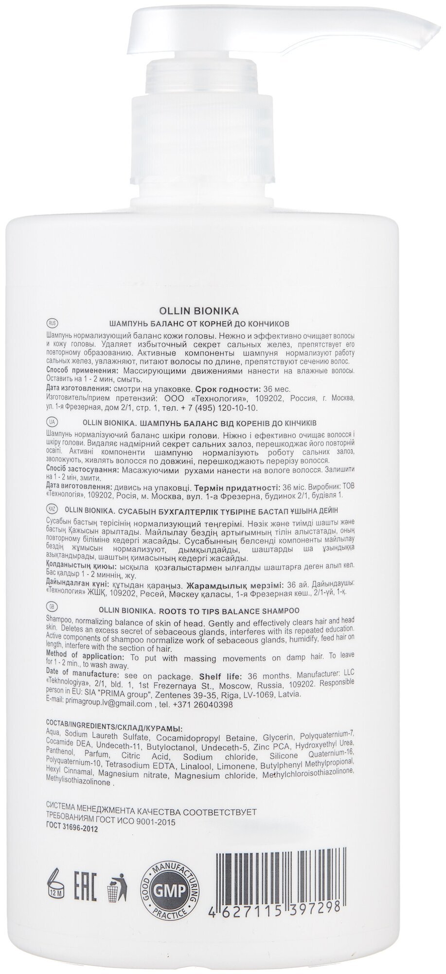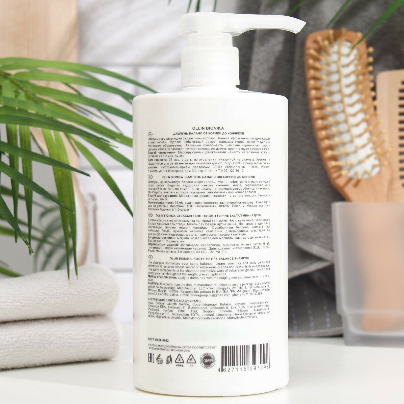 OLLIN BIONIKA шампунь баланс от корней до кончиков - Прозрачная гелеобразная текстура с легким, освежающим запахом