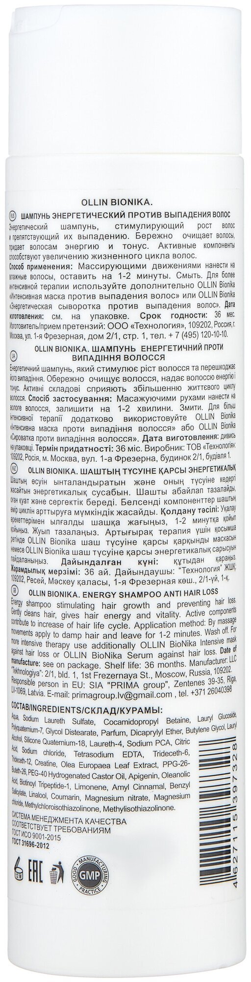 Энергетический шампунь против выпадения волос благодаря специально подобранным между собой компонентам, входящим в его состав, восстанавливает структуру волоса и стимулирует рост новых. Действующие составляющие этого продукта: прокапил и комплекс аминокислот. Именно, прокапил отвечает за снижение старения волосяной луковицы и непосредственную стимуляцию роста новых волос. А комплекс аминокислот заряжают жизненной энергией, дарят локонам яркость и легкость. Энергетический шампунь против выпадения волос благодаря специально подобранным между собой компонентам, входящим в его состав, восстанавливает структуру волоса и стимулирует рост новых. Действующие составляющие этого продукта: прокапил и комплекс аминокислот. Именно, прокапил отвечает за снижение старения волосяной луковицы и непосредственную стимуляцию роста новых волос. А комплекс аминокислот заряжают жизненной энергией, дарят локонам яркость и легкость. Энергетический шампунь против выпадения волос благодаря специально подобранным между собой компонентам, входящим в его состав, восстанавливает структуру волоса и стимулирует рост новых. Действующие составляющие этого продукта: прокапил и комплекс аминокислот. Именно, прокапил отвечает за снижение старения волосяной луковицы и непосредственную стимуляцию роста новых волос. А комплекс аминокислот заряжают жизненной энергией, дарят локонам яркость и легкость. Энергетический шампунь против выпадения волос благодаря специально подобранным между собой компонентам, входящим в его состав, восстанавливает структуру волоса и стимулирует рост новых. Действующие составляющие этого продукта: прокапил и комплекс аминокислот. Именно, прокапил отвечает за снижение старения волосяной луковицы и непосредственную стимуляцию роста новых волос. А комплекс аминокислот заряжают жизненной энергией, дарят локонам яркость и легкость.