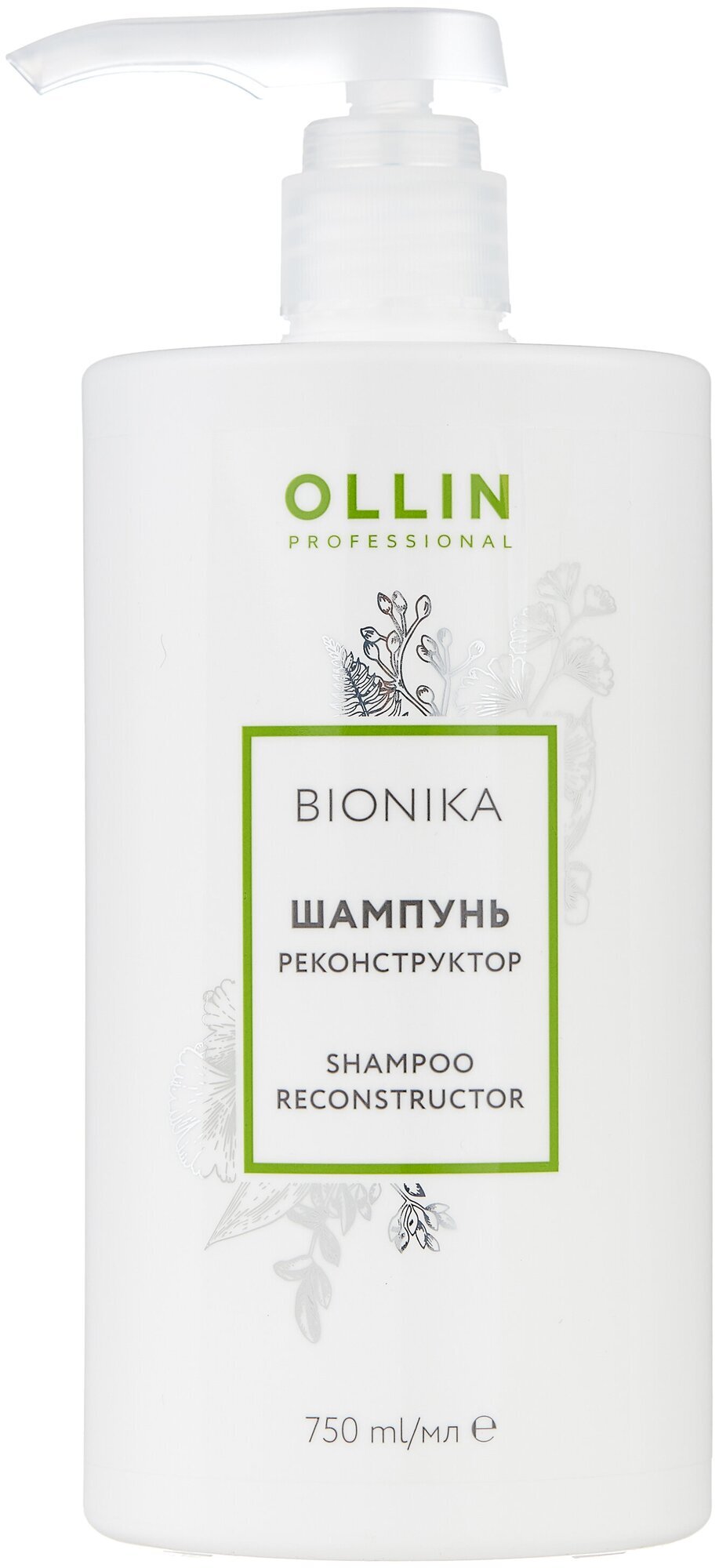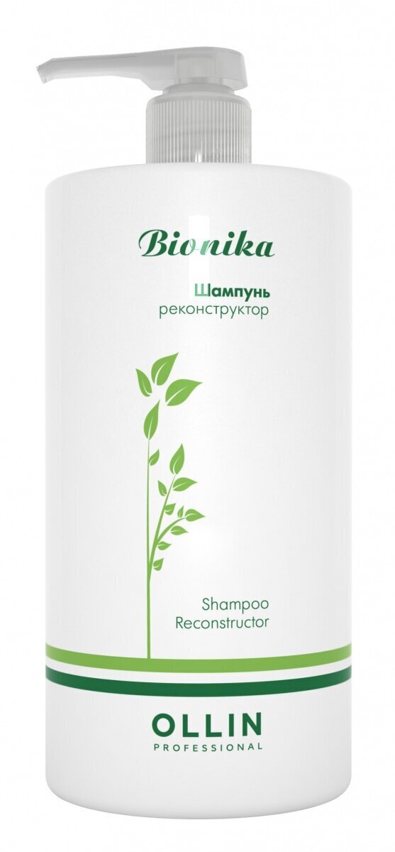 Шампунь реконструктор OLLIN BIONIKA 750мл с дозатором предназначен для ломких, тонких и поврежденных волос. Он деликатно очищает, восстанавливает и регенерирует поврежденные слои волоса, входя в состав процедуры Бионизации волос.