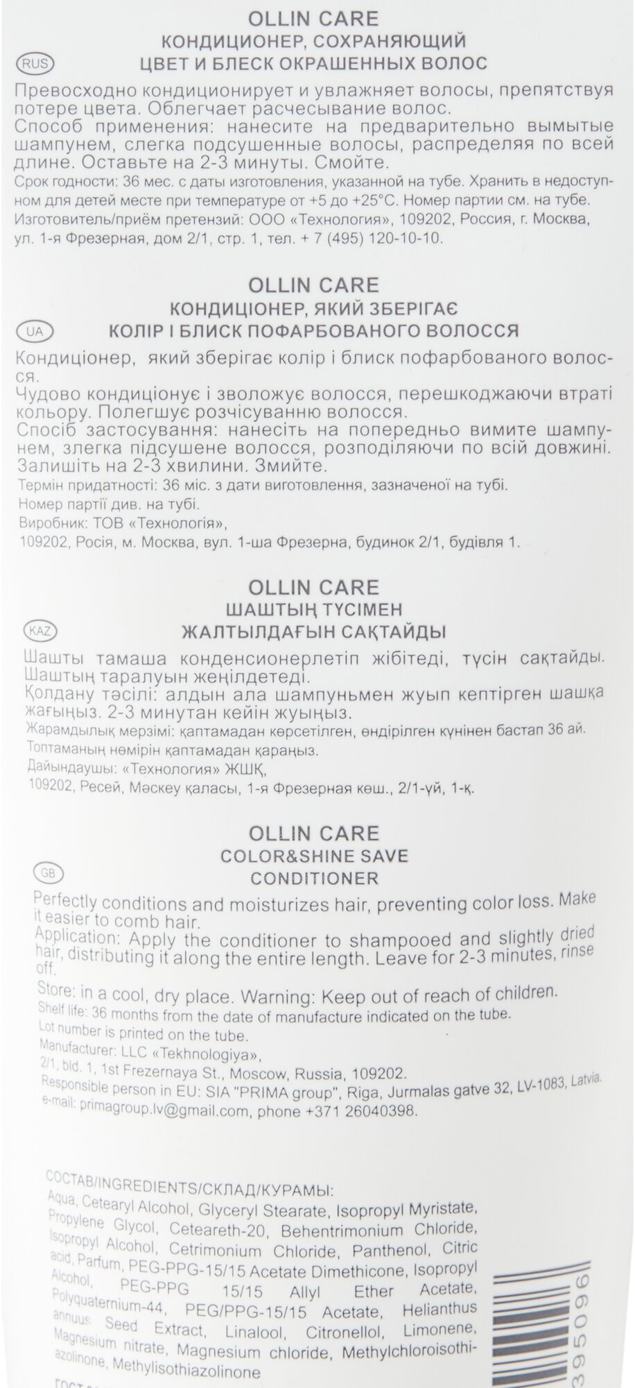 Выбирая кондиционер OLLIN CARE, вы получаете профессиональное средство для ухода за окрашенными волосами, которое обеспечивает сохранение яркости и блеска, увлажнение, питание и восстановление волос.