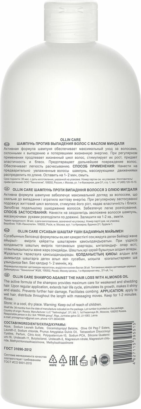 OLLIN Care Almond Oil Shampoo - это выбор тех, кто ценит качество, эффективность и заботу о своих волосах.