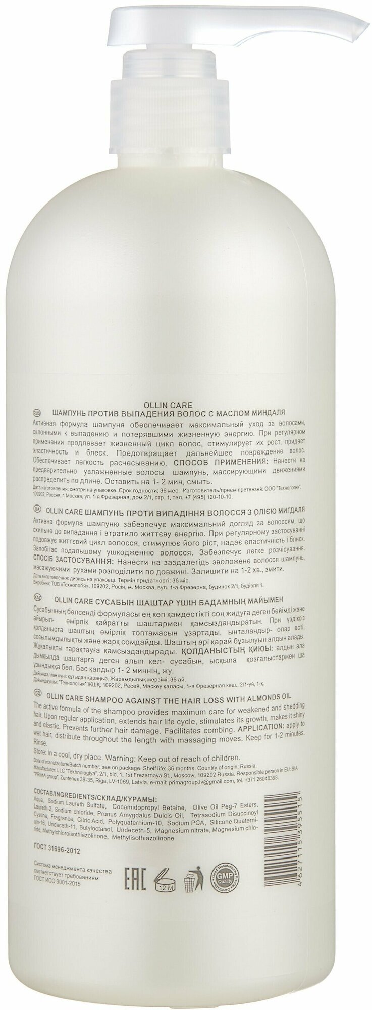 OLLIN CARE Шампунь против выпадения волос с маслом миндаля 1000мл/ Almond Oil Shampoo