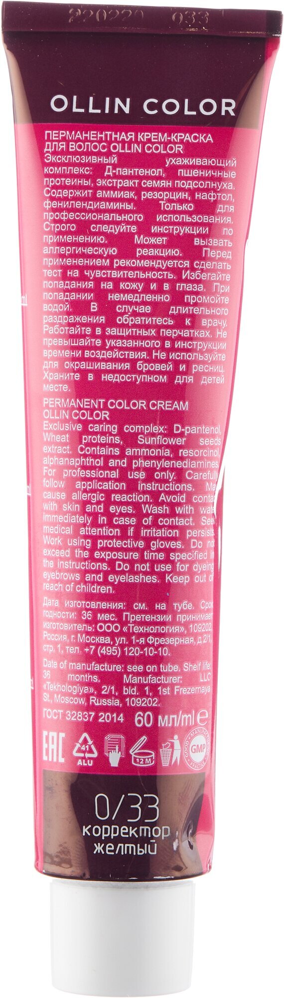 Ollin Корректор нейтральный Color 0/0 - перманентная краситель (крем-краска) с низким содержанием аммиака для создания ярких, насыщенных оттенков. Инновационная формула с содержанием активных пигментов самого высочайшего качества гарантирует получение однородного цвета и сто процентное покрытие седины.