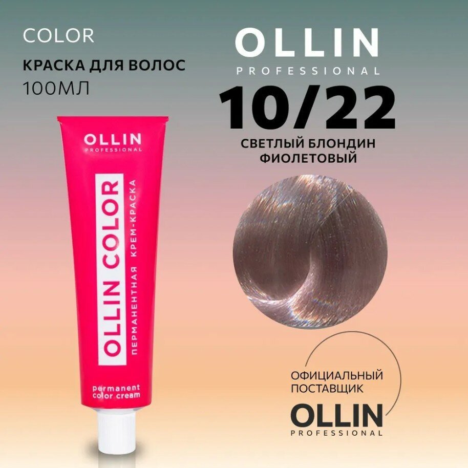 OLLIN COLOR 10/22 светлый блондин фиолетовый 100 мл - это профессиональное средство для стойкого окрашивания волос, которое обеспечивает равномерное закрашивание седины, придает блеск, увлажняет и восстанавливает структуру волос.