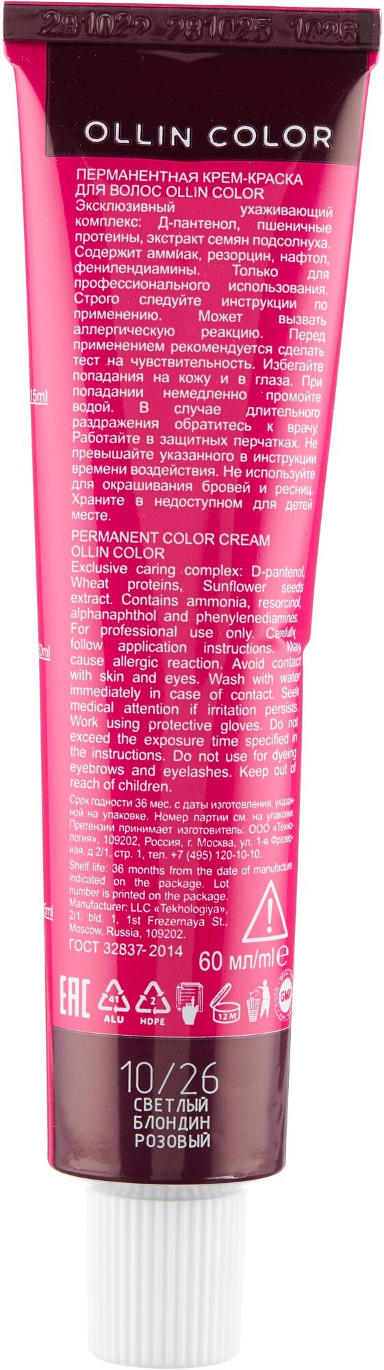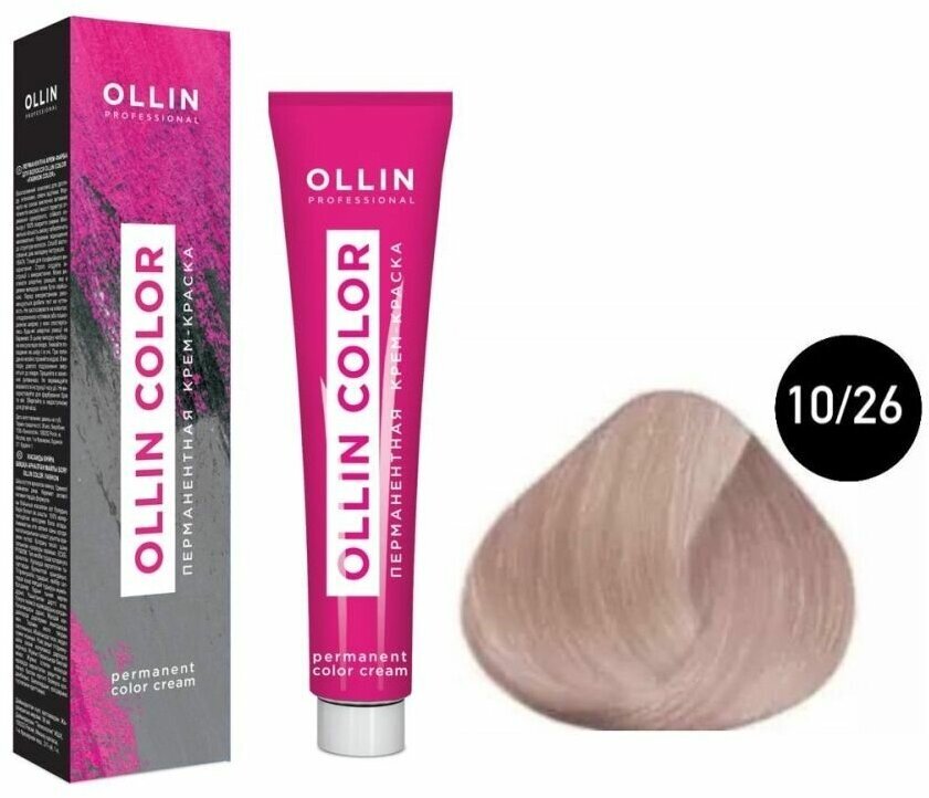 Перманентная крем-краска для волос OLLIN COLOR 10/26 светлый блондин розовый 60мл.