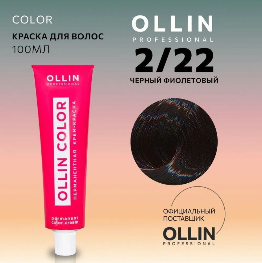 Перманентная крем-краска OLLIN COLOR 2/22 черный фиолетовый 100 мл - профессиональное средство для стойкого окрашивания волос. Произведена в России, бренд OLLIN Professional зарекомендовал себя на рынке как надежный производитель качественной косметики для волос.
