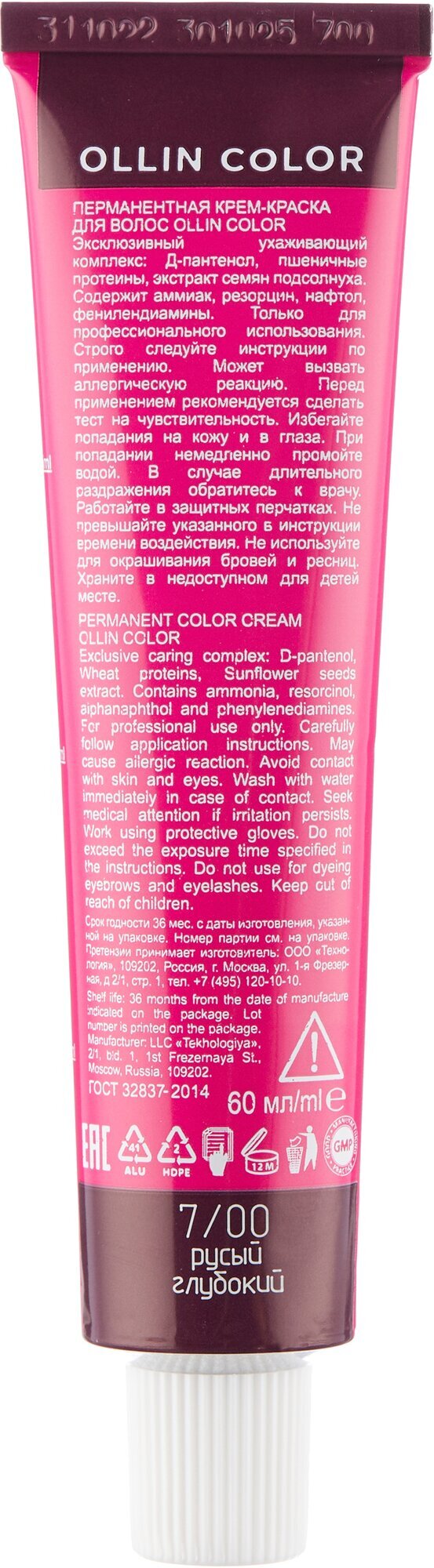 OLLIN COLOR 7/00 русый глубокий 60мл Перманентная крем-краска для волос
