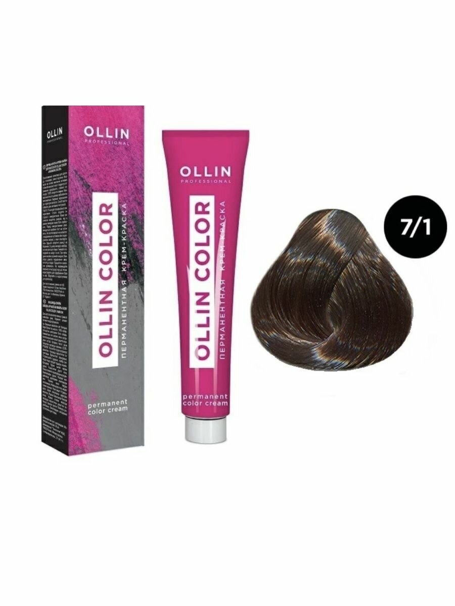 Перманентная крем-краска OLLIN COLOR 7/1 русый пепельный 100 мл предназначена для стойкого окрашивания и ухода за волосами.