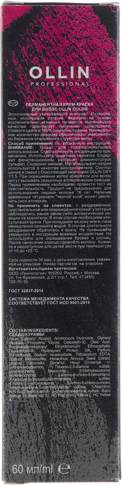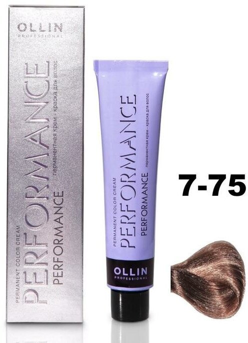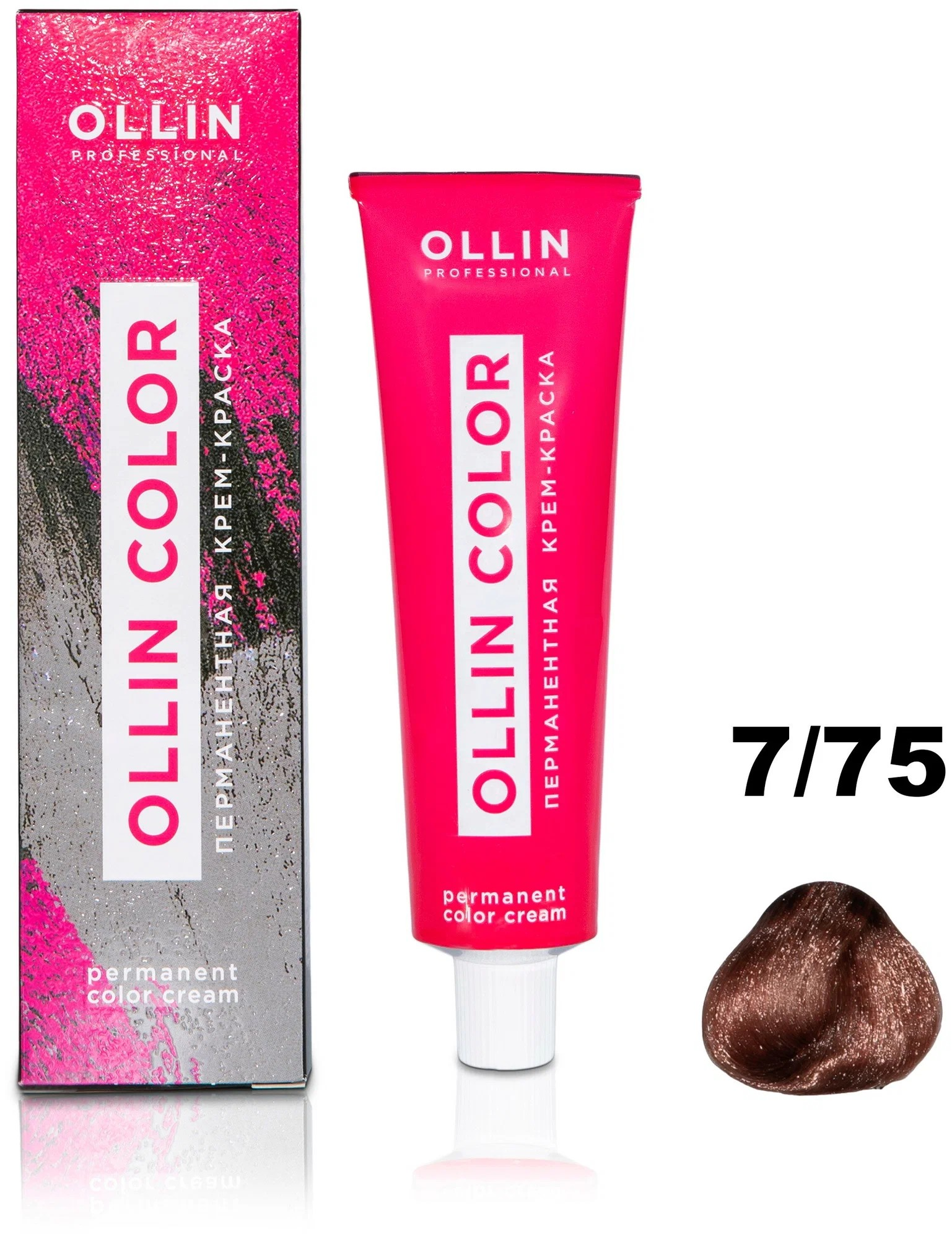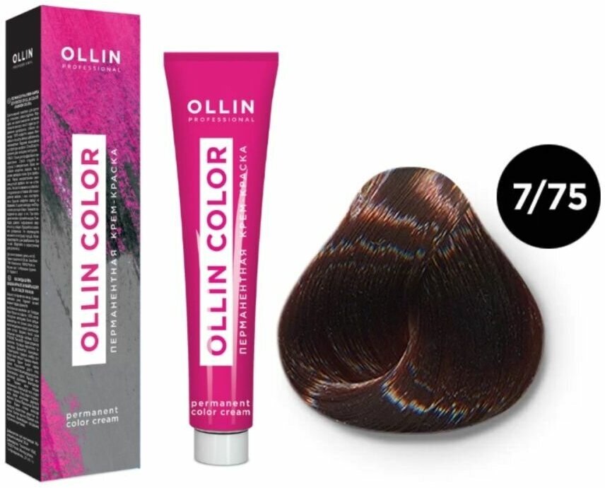 Перманентная крем-краска для волос OLLIN COLOR 7/75 русый коричнево-махагоновый 60мл