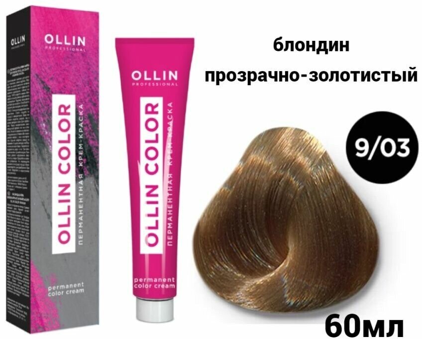 Перманентная крем-краска OLLIN COLOR 9/03 блондин прозрачно-золотистый 60мл