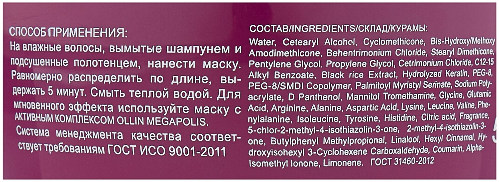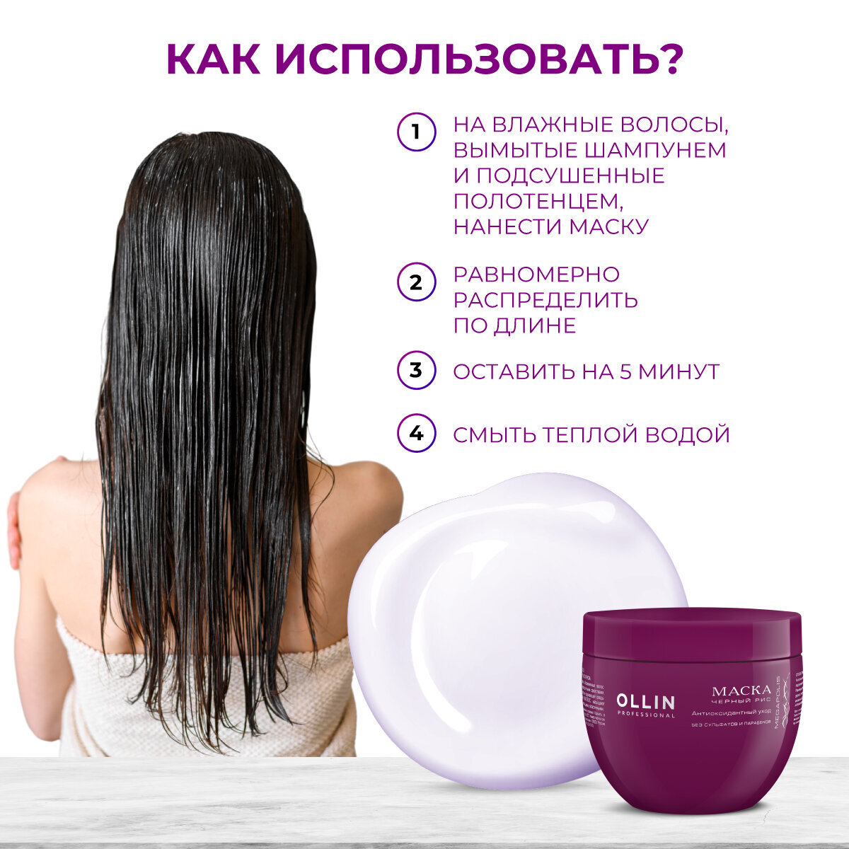 Маска идеально подходит для тусклых, обезвоженных волос. Делает волосы плотными, блестящими и эластичными.