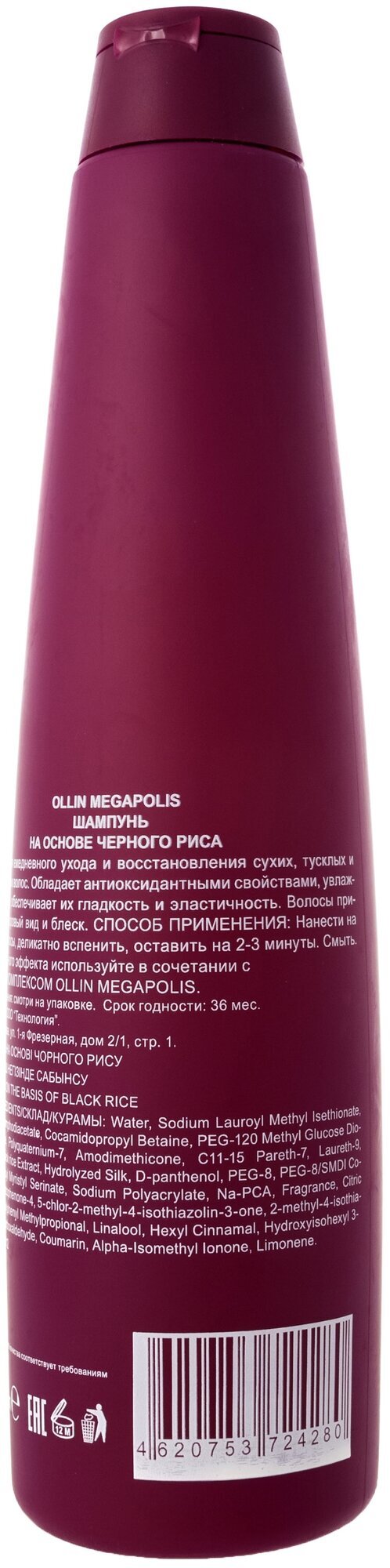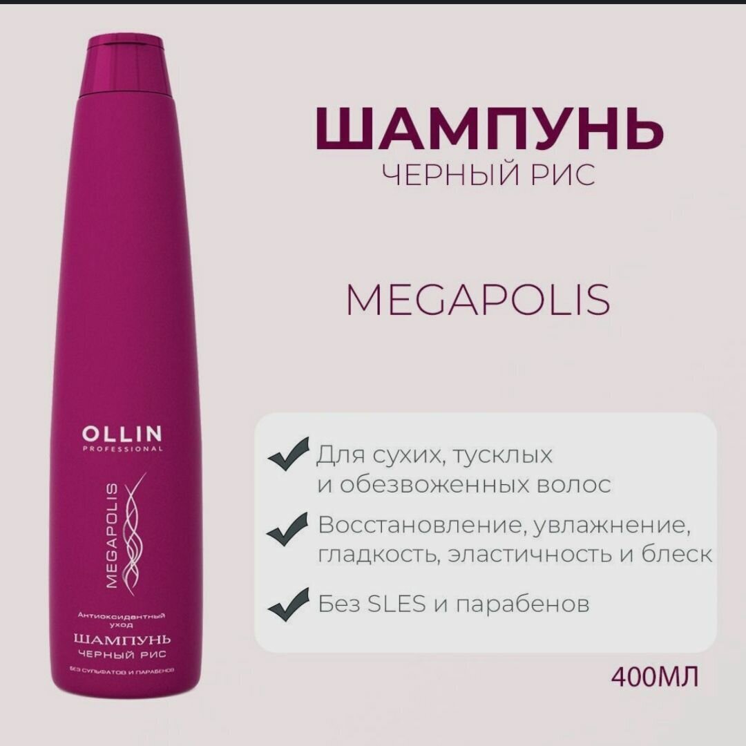 OLLIN MEGAPOLIS Шампунь на основе черного риса 400мл (БЕЗ СУЛЬФАТОВ и ПАРАБЕНОВ)