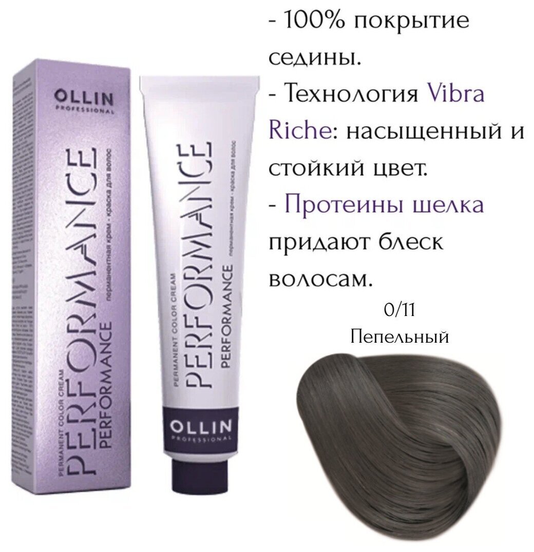 OLLIN PERFORMANCE 0/11 пепельный 60мл Перманентная крем-краска для волос