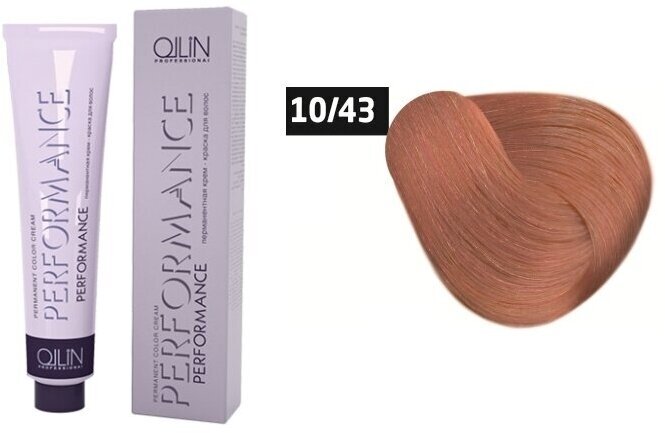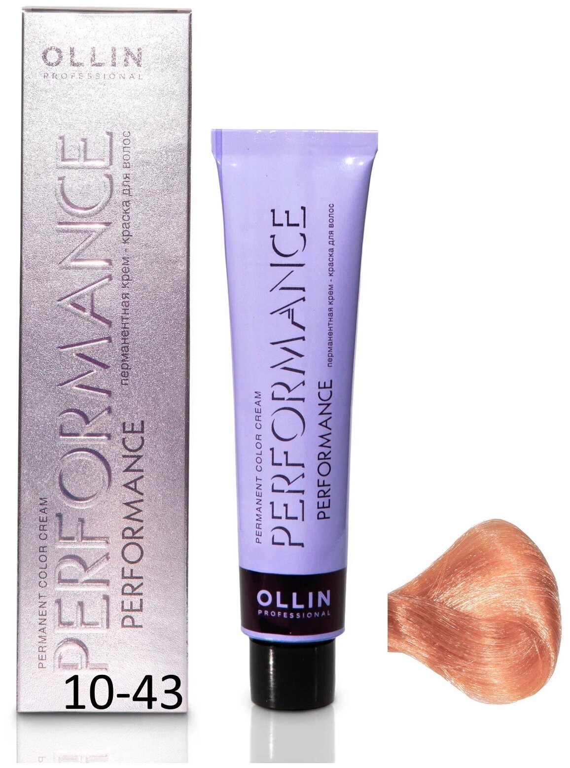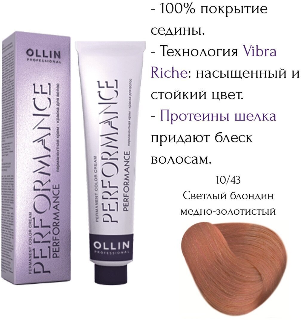OLLIN PERFORMANCE 10/43 светлый блондин медно-золотистый 60мл - это профессиональное средство для стойкого окрашивания волос, которое обеспечивает закрашивание седины и придание блеска.