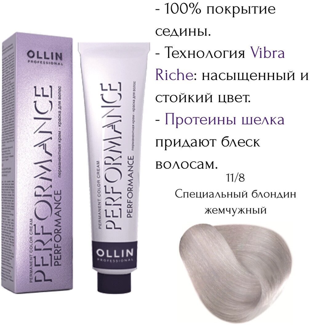 OLLIN PERFORMANCE 11/8 специальный блондин жемчужный 60мл Перманентная крем-краска для волос