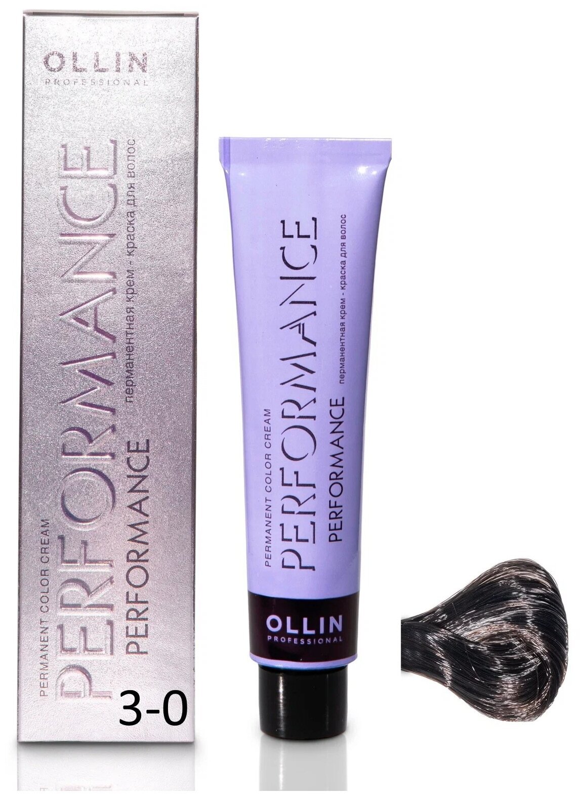Перманентная крем-краска для волос OLLIN PERFORMANCE 3/0 темный шатен 60мл