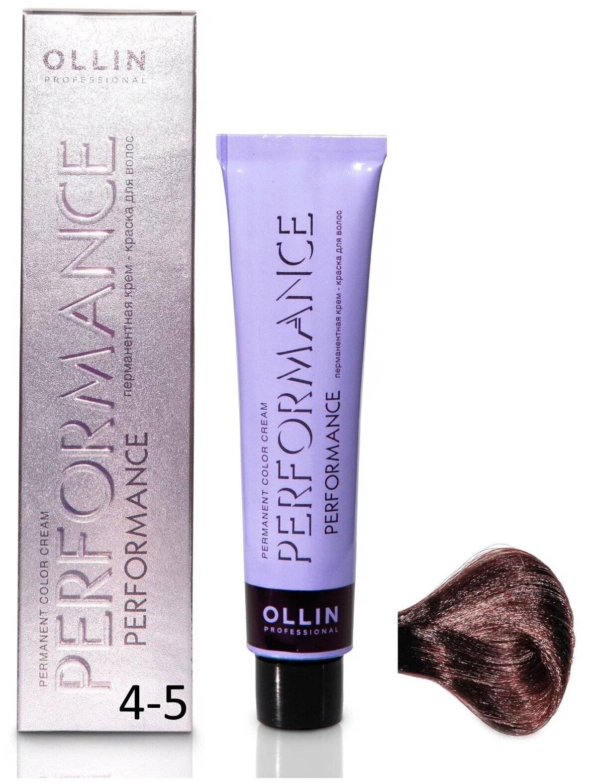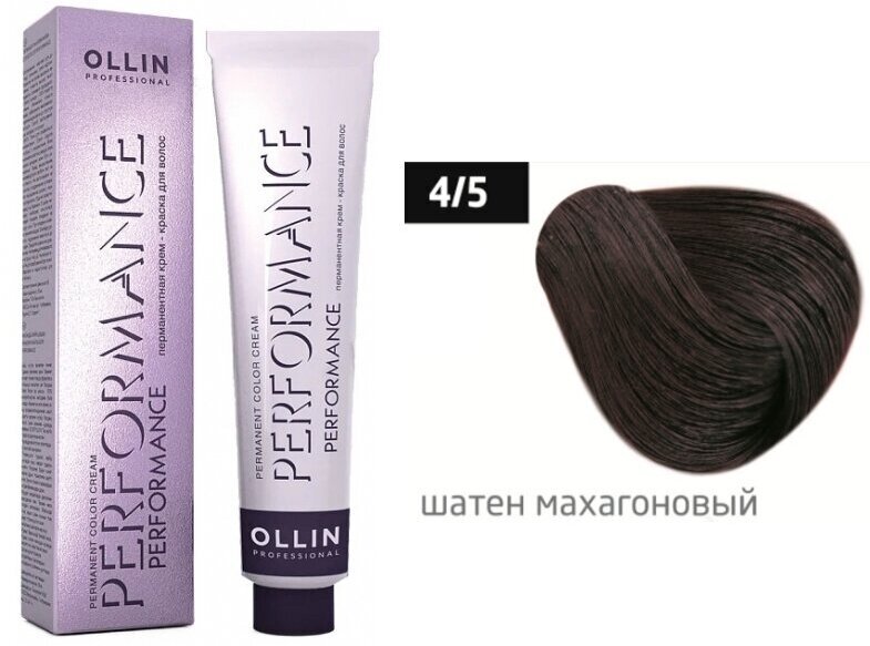 OLLIN PERFORMANCE 4/5 шатен махагоновый 60мл - это профессиональное средство для стойкого окрашивания, которое обеспечивает закрашивание седины и придание блеска волосам.