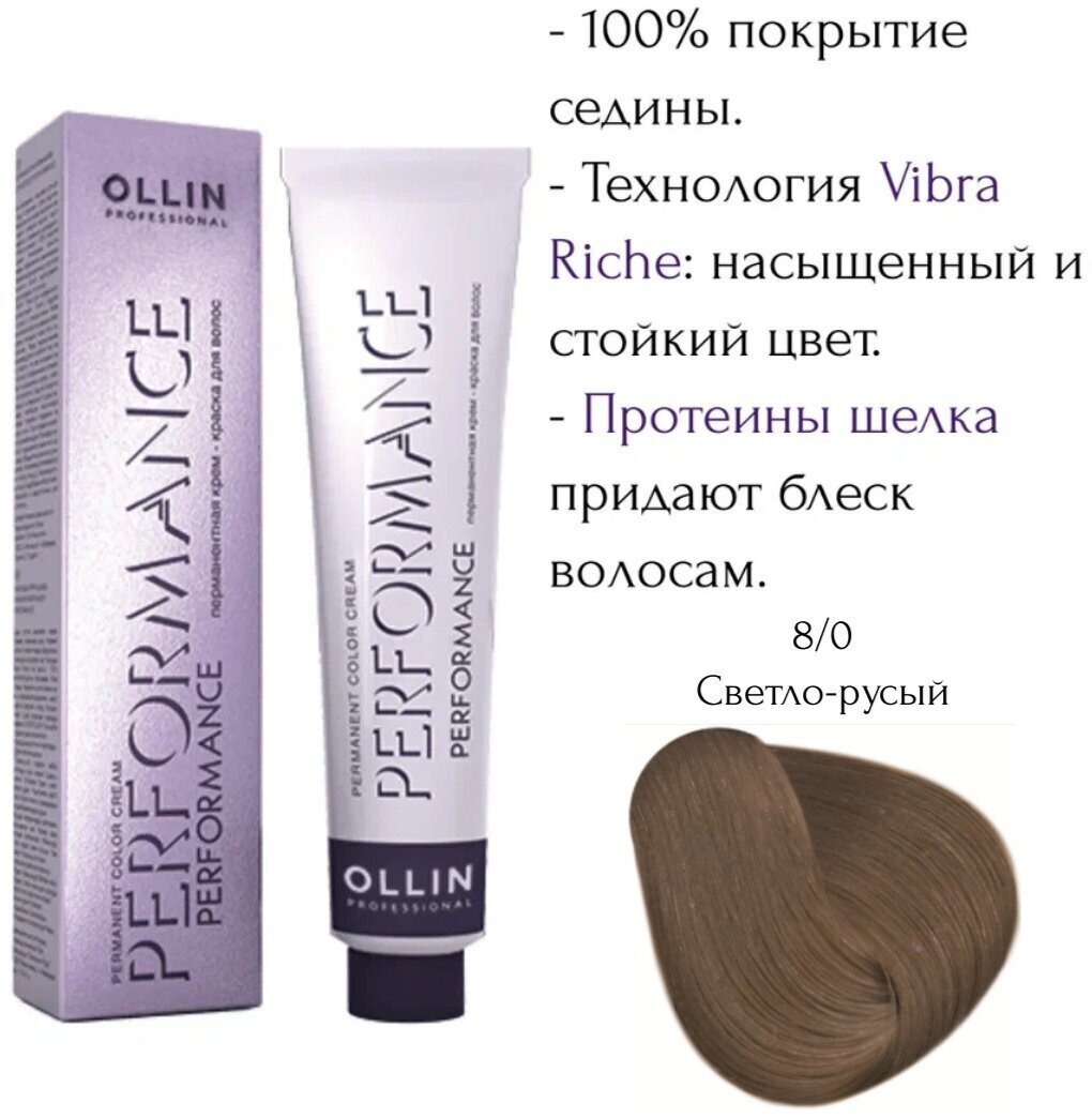 OLLIN PERFORMANCE 8/0 светло-русый 60мл Перманентная крем-краска для волос