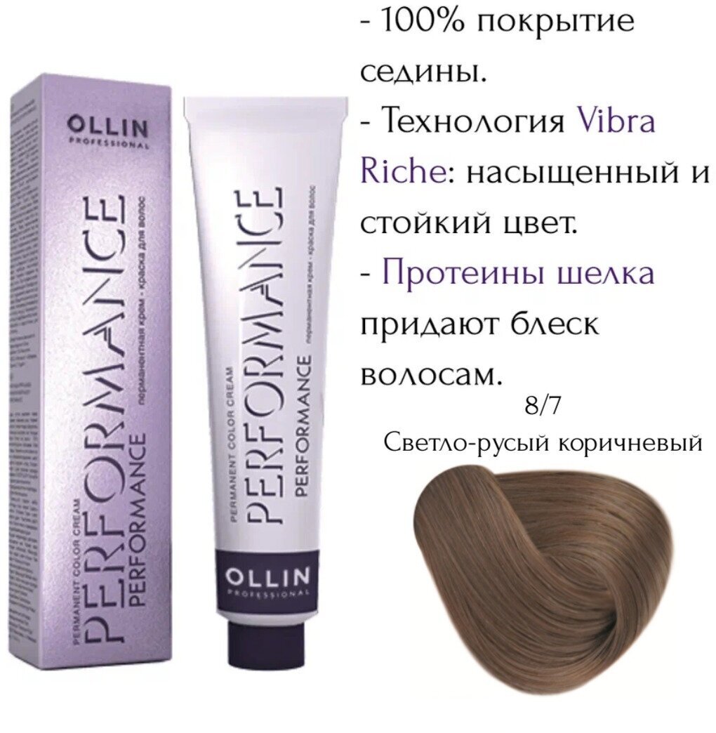 OLLIN PERFORMANCE 8/7 светло-русый коричневый 60мл Перманентная крем-краска для волос