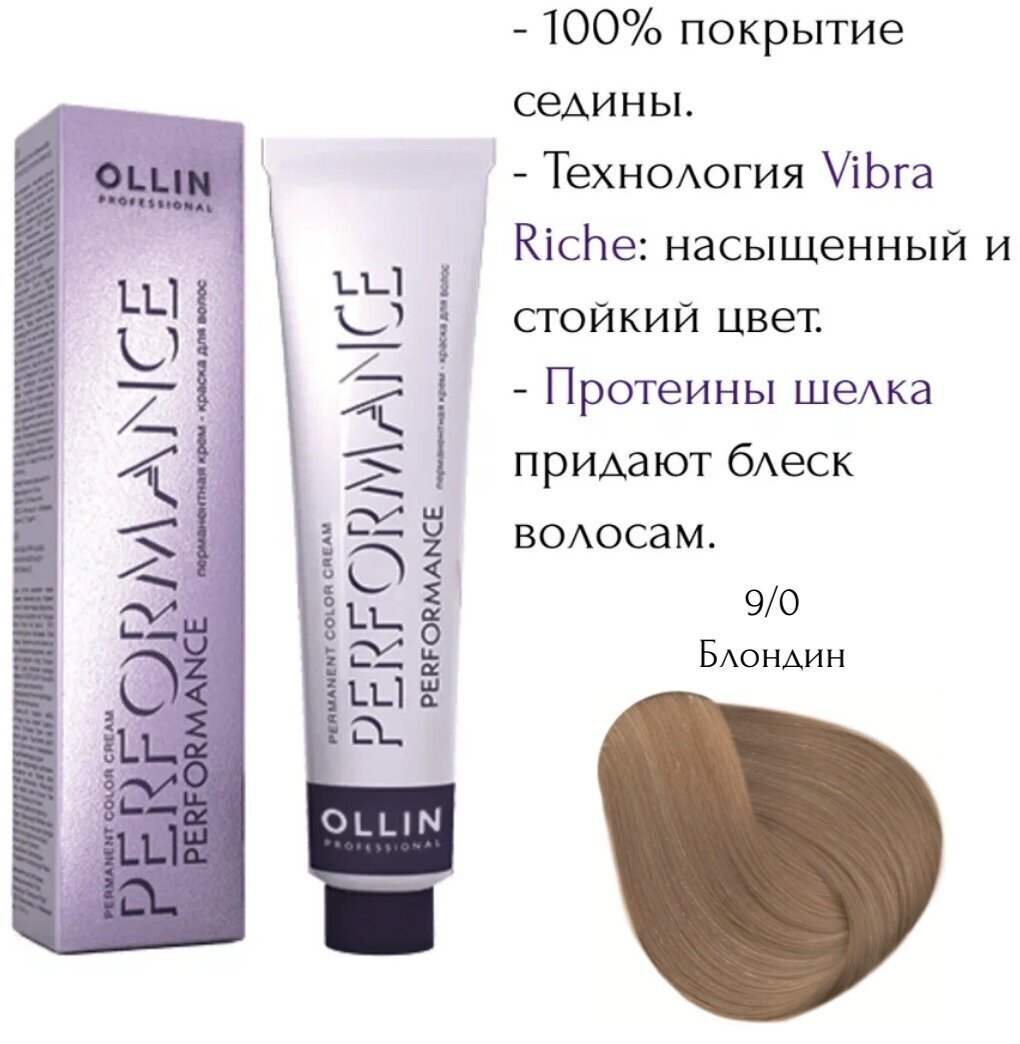 OLLIN PERFORMANCE 9/0 блондин 60мл Перманентная крем-краска для волос