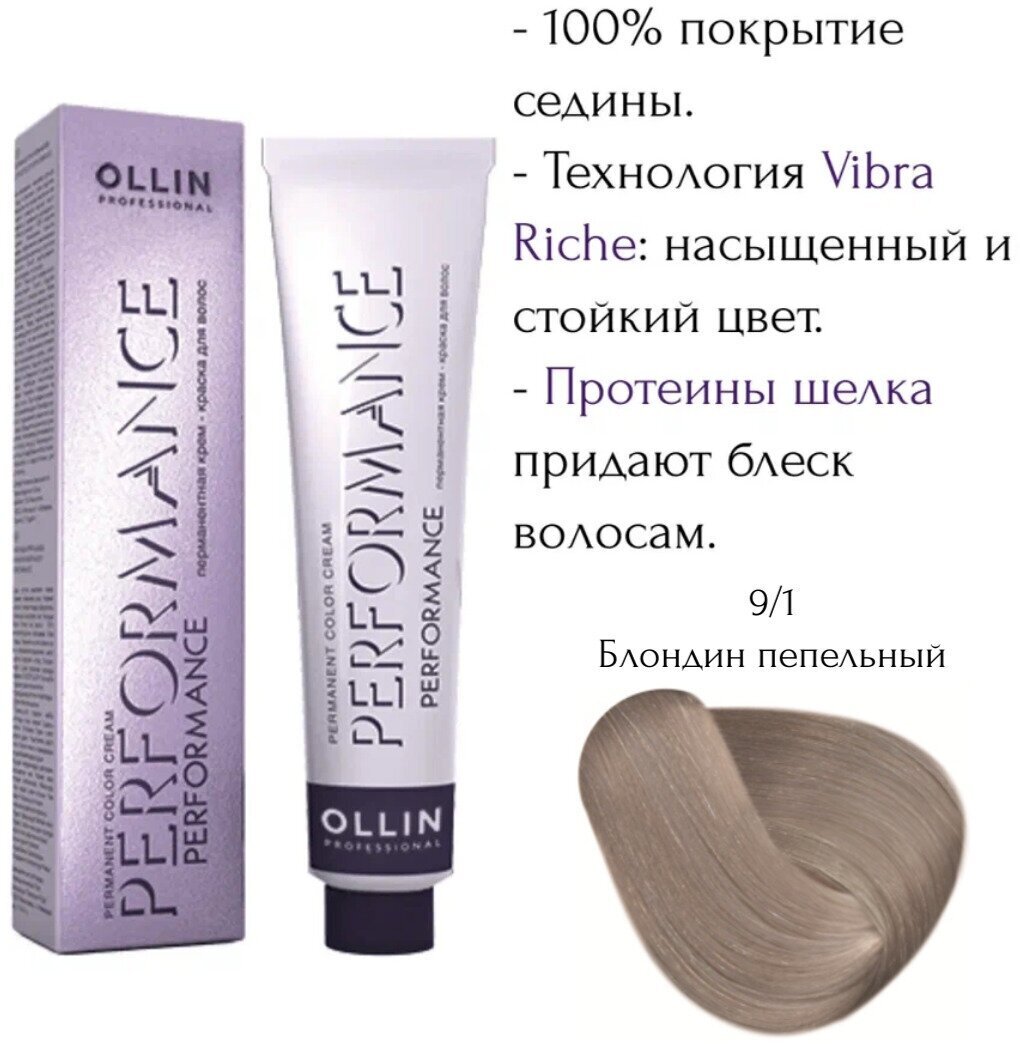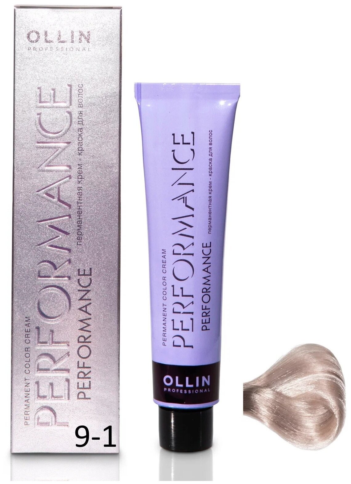 OLLIN PERFORMANCE 9/1 блондин пепельный 60мл Перманентная крем-краска для волос