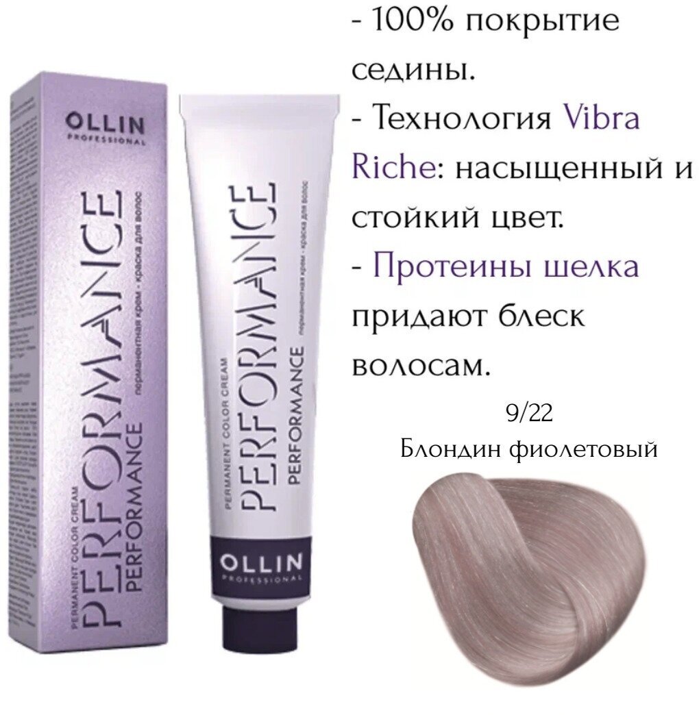 OLLIN PERFORMANCE 9/22 блондин фиолетовый 60мл Перманентная крем-краска для волос