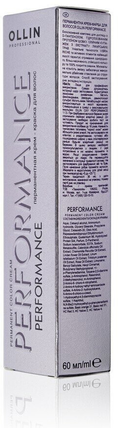 PERFORMANCE - крем-краска для волос, которая расширяет возможности мастера, делает процесс окрашивания проще и удобнее. Формула красителя гарантирует получение желаемого результата при окрашивании любой сложности. Уникальный состав красителя обеспечивает надежный уход за волосами и кожей головы, придает ослепительный блеск и сохраняет цвет до шести недель. Активные пигменты нового поколения и уникальная технология Vibra Riche обеспечивают получение насыщенного и стойкого цвета, а также 100% покрытия седины. Масляный купаж из экстрактов лекарственных трав устраняет раздражение и обеспечивает удивительно мягкое воздействие красителя на волосы и кожу головы. Входящие в состав гидролизованные протеины шелка придают волосам естественный блеск, который долго не тускнеет. Палитра Performance содержит 120 оттенков. Из них 101 оттенок основной палитры, 10 оттенков специальных блондинов и 9 корректоров цвета.