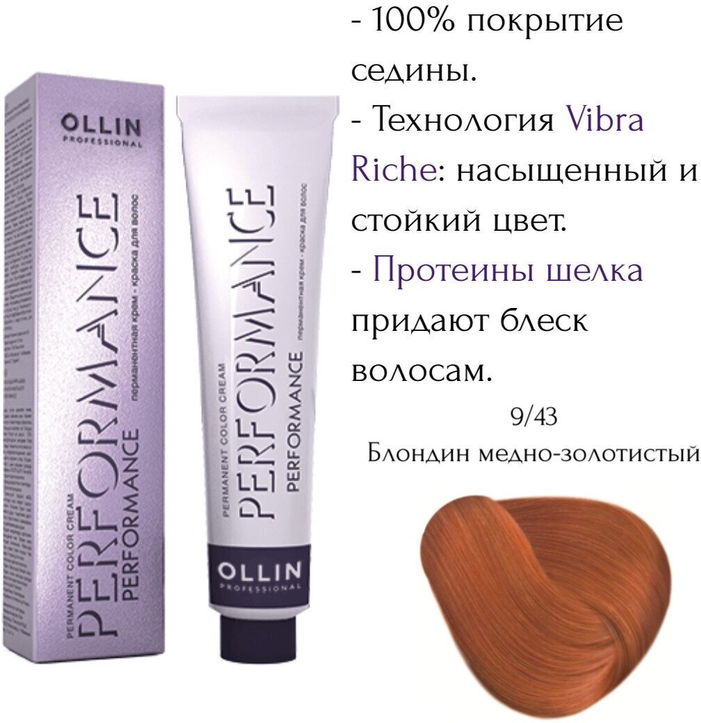 OLLIN PERFORMANCE 9/43 блондин медно-золотистый 60мл Перманентная крем-краска для волос