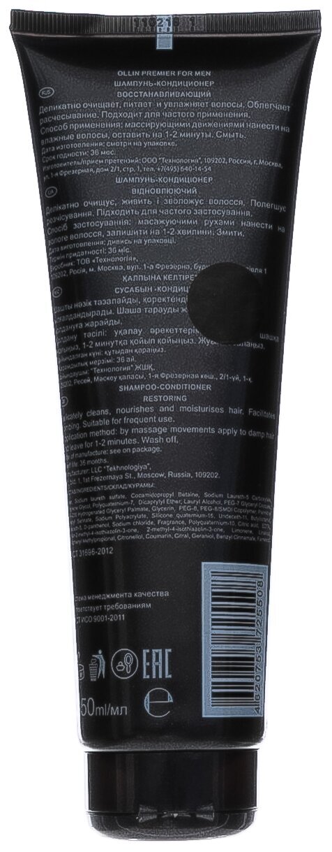Шампунь-кондиционер OLLIN PREMIER FOR MEN предназначен для мужчин и обеспечивает комплексный уход за волосами. Объем составляет 250 мл, что делает его удобным для использования в домашних условиях.